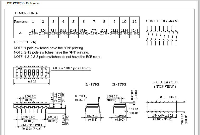 Тайвань ECE Bairong EAM102E DIP-переключатель 2-разрядный тип ключа в он-лайн Американская классификация проводов 2р плоский циферблат кодирования 2,54 мм с подробной информацией и чертеж, с указанием размеров