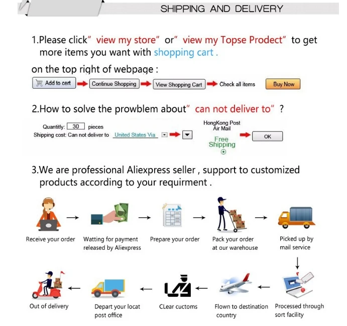 1. Удовлетворение потребностей клиентов очень важно для нас. Если вы удовлетворены нашим обслуживанием, пожалуйста, оцените детали сделки Aliexpress с совершенным «5 звезд» и оставьте нам положительный отзыв об оценке.