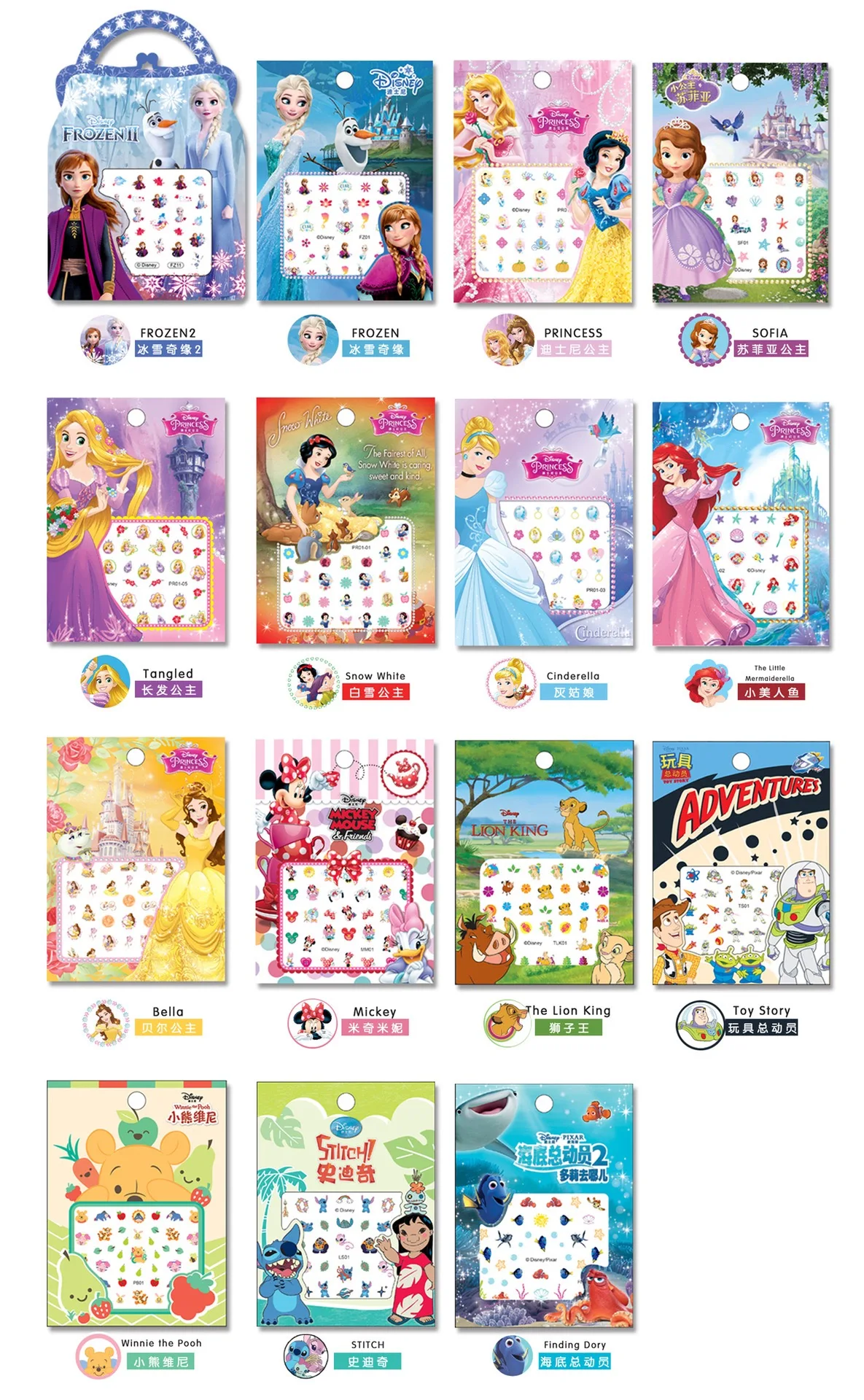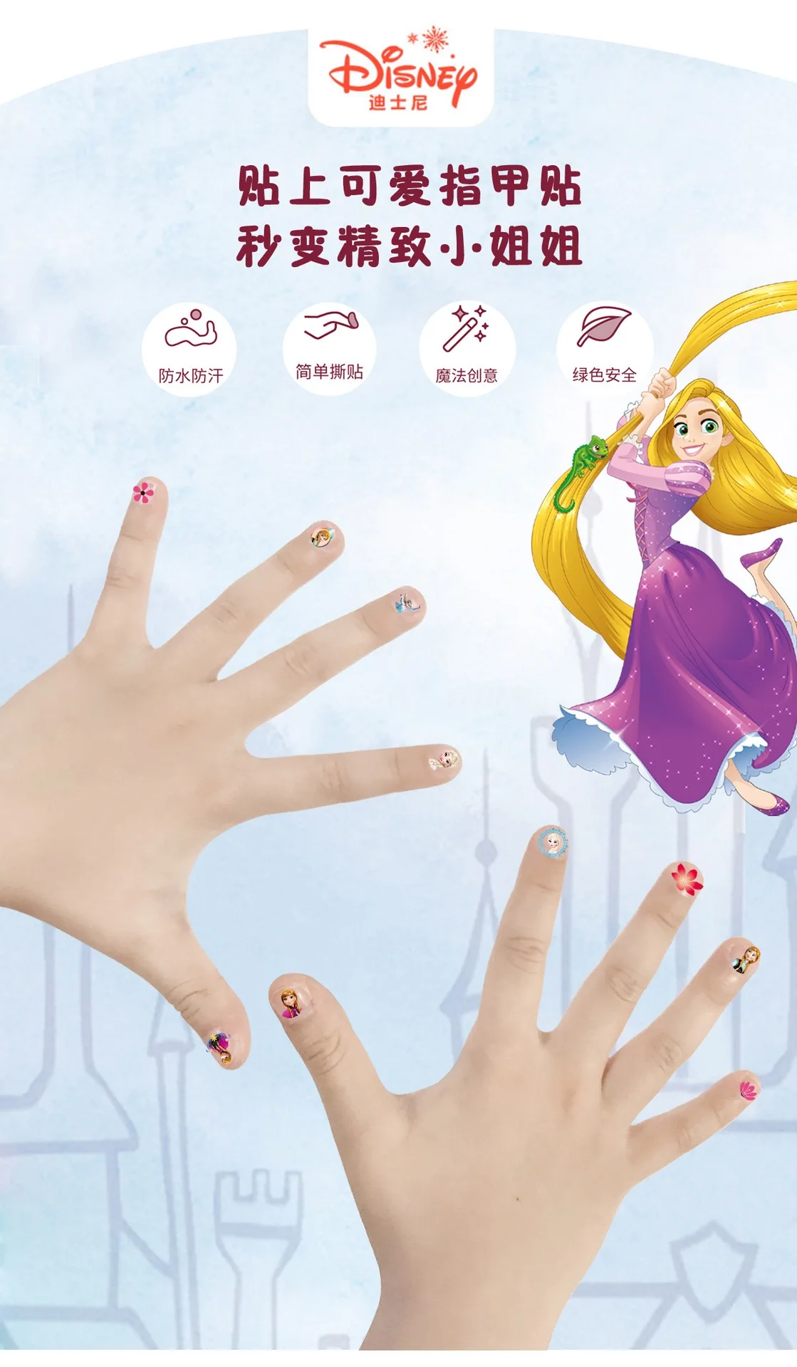 Дисней мультфильм Холодное сердце принцесса Эльза Анна Белоснежка макияж наклейки для ногтей Минни Микки Русалочка наклейки «Стич» игрушка для детейБренд: DisneyНазвание продукта: Детская Наклейка для ногтей с персонажем мультфильмаВозраст: старше 3 летПараметры: 6,2 см * 5,2 см Упаковка Размеры: 11*8 см (Стикеры + мешок из полиуретана с открытыми порами упаковка)