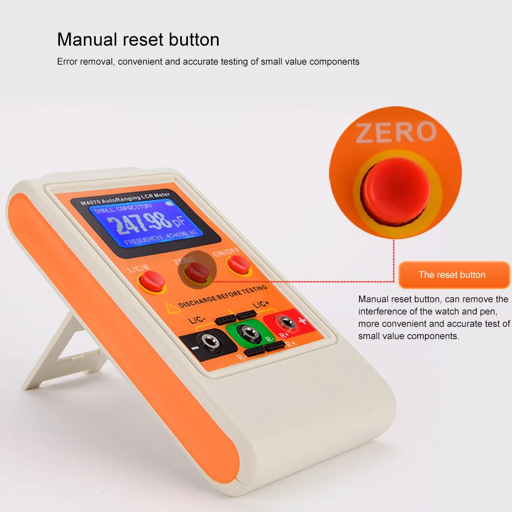 Полностью автоматический дизайн и большой ЖК-дисплей с подсветкой. Высокое разрешение, до 5 светодиодами, самые лучшие Разрешение: 0.01pF, 0.001uH, 0.01R; Высокая стабильность и диапазон измерения для объективов L/ C/ R.