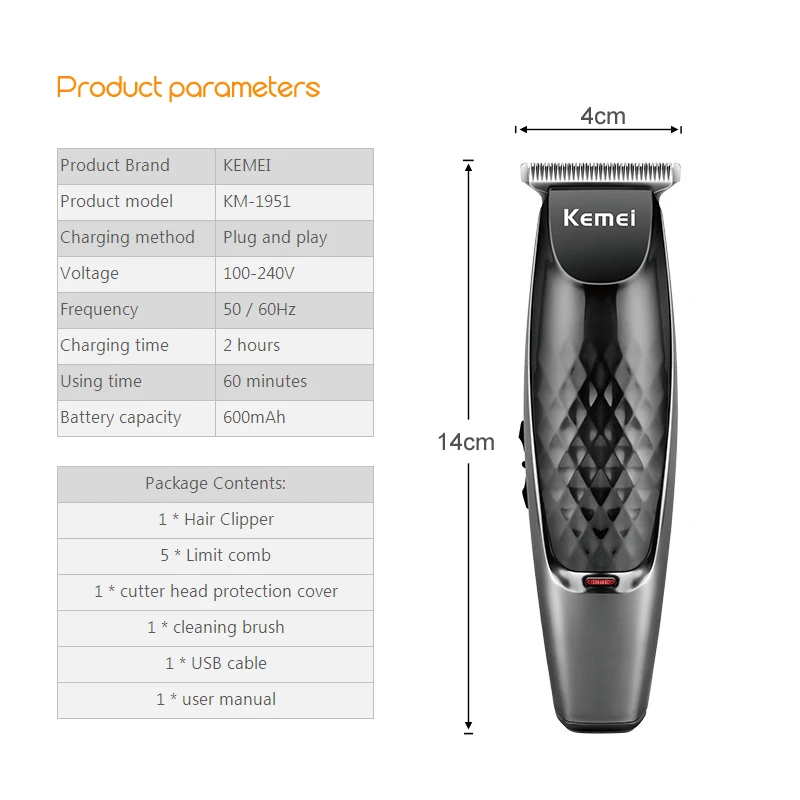Короткий триммер для стрижки волос Kemei Mans T-shape Blade 0,1 мм прецизионные кусачки Kemel 0,1 мм Detailer Kamei Детализация для чертежей
