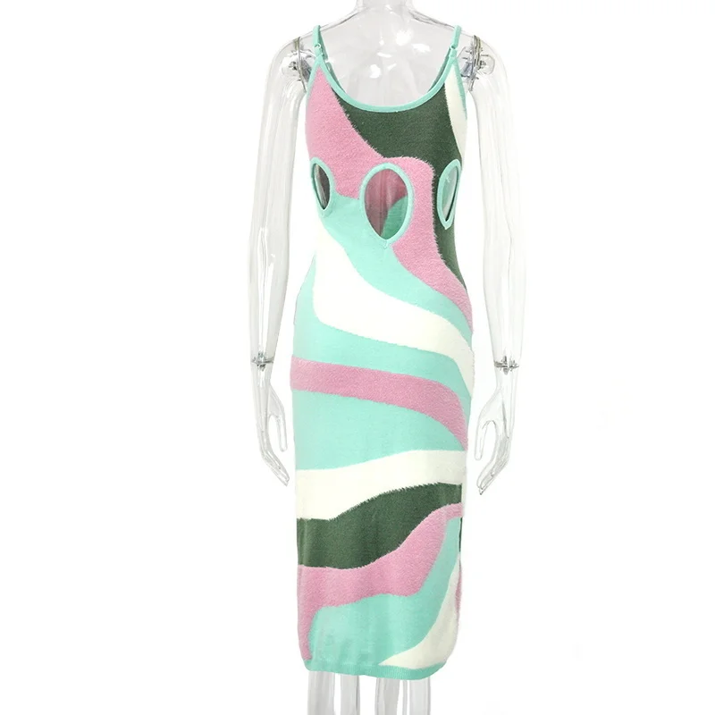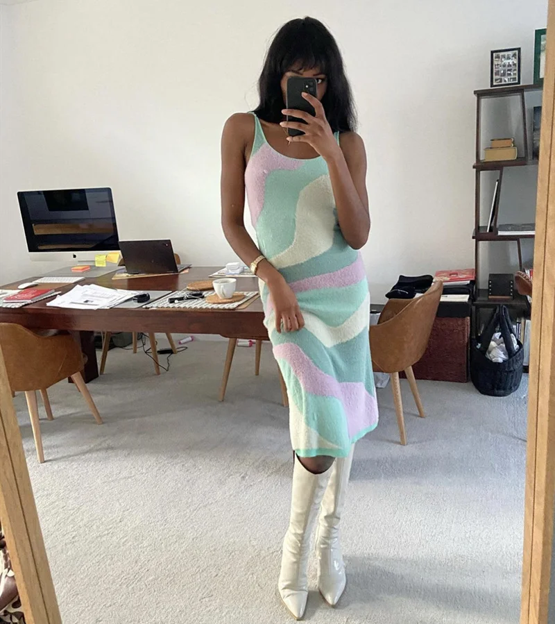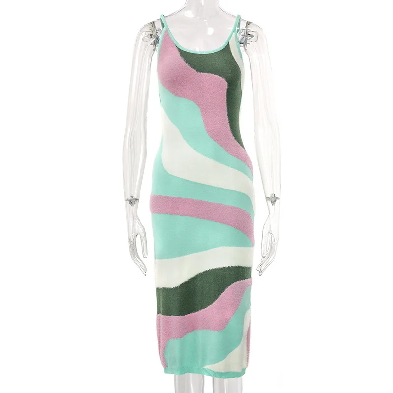 Женское летнее пляжное платье House Of Party, открытое трикотажное платье на бретельках Y2K, сексуальное облегающее платье с узором пейсли