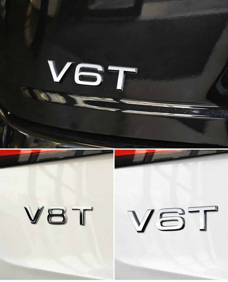 3D металлический V6T V8T логотип автомобиля тело багажник эмблема наклейка для Audi Quattro A4 A3 A6 A5 Q5 Q7 Q3 A1 TT S1 S3 S4 S5 S6 RS3 RS4 RS7 RS8
