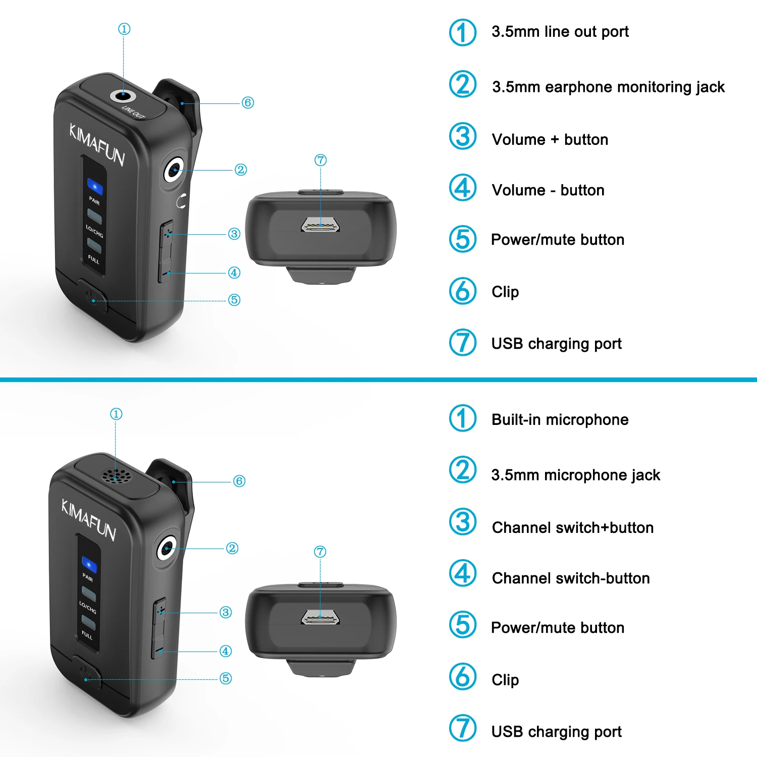 ★Перезаряжаемый-Эта беспроводная система использует перезаряжаемую литиевую батарею, которая более экологична, чем одноразовая батарея. Подходящая емкость аккумулятора гарантирует, что вы можете использовать его в течение 5 часов, когда он полностью заряжен. Вы можете быстро узнать оставшуюся силу тока от индикатора зарядки. Вы можете полностью зарядить их одновременно в течение 2 часов с помощью двойного usb-кабеля. Когда вы не используете их, пожалуйста, выключите и убедитесь, что заряжаете их один раз в месяц, чтобы продлить срок службы батареи.