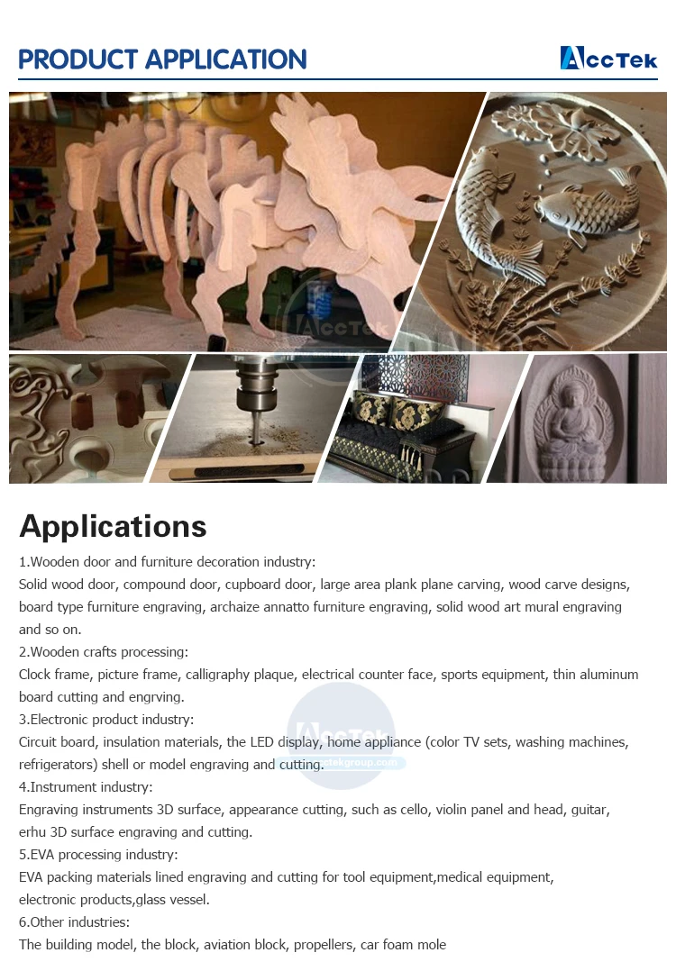 1. Деревянная мебельная индустрия: волновая пластина, тонкий узор, антикварная мебель, деревянная дверь, экран, ремесло створки, композитные ворота, чашки двери, межкомнатные двери, диванные ножки, изголовья, игровые шкафы, компьютерные столы, швейные машины стол, инструменты и т. Д. 2. Рекламная индустрия: идентификация рекламы, создание вздыбания, гравировка и резка акрила, изготовление слов кристаллами, литье бластеров и другие производные рекламные материалы 3. Изделия: гравировка символов любого языка и узоров на подарках и сувенирах, примитивная обработка и формирование художественных ремесел и шпильки 4. Формование: гравировка деликатных букв и цветочных узоров, примитивная и тонкая обработка небольшой формы. 5. Архитектурные модели: гравировка тонкого окна, ограждение и настенные узоры и т. д.