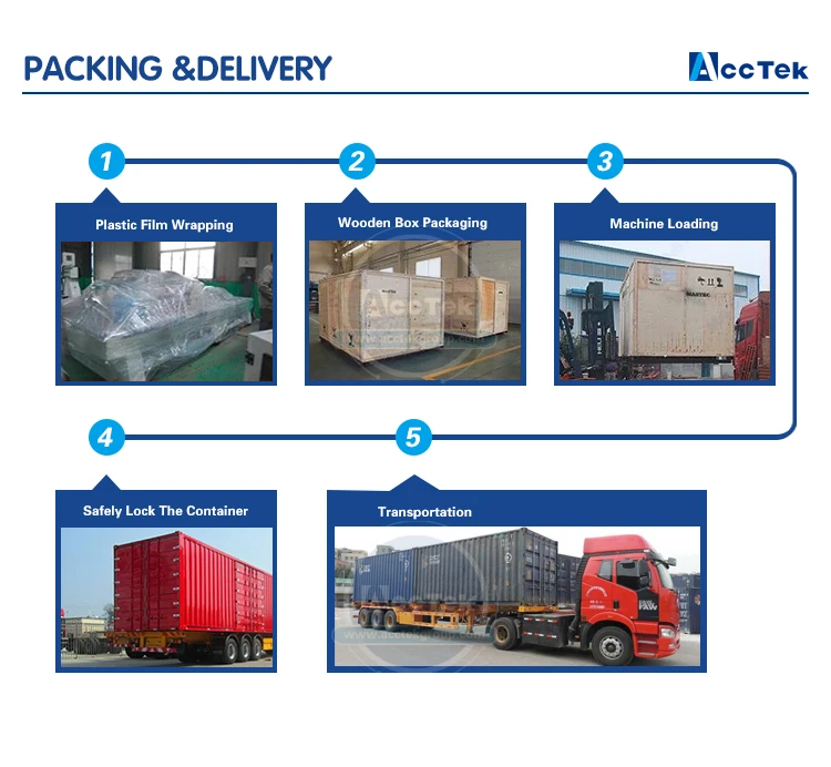 1. Вся упаковочная машина для пленки. 2. Посылка для предотвращения столкновений. 3. Фанерная деревянная коробка без фумигации с железным переплетом. 4. В соответствии с требованиями заказчика для погрузки всего контейнера или LCL в порт Циндао.