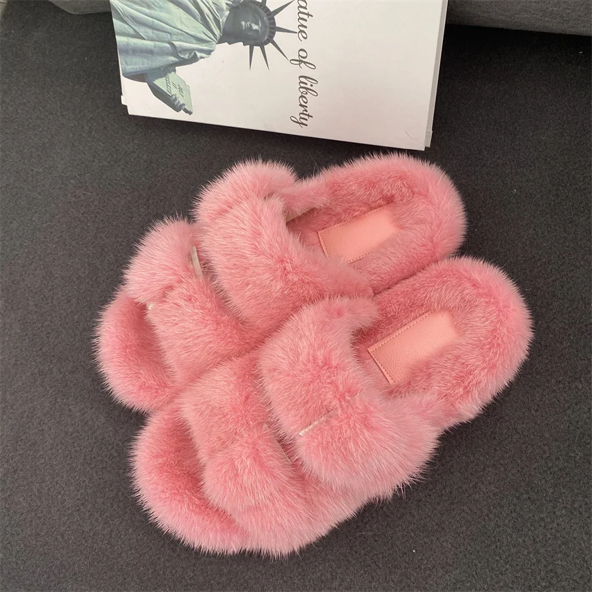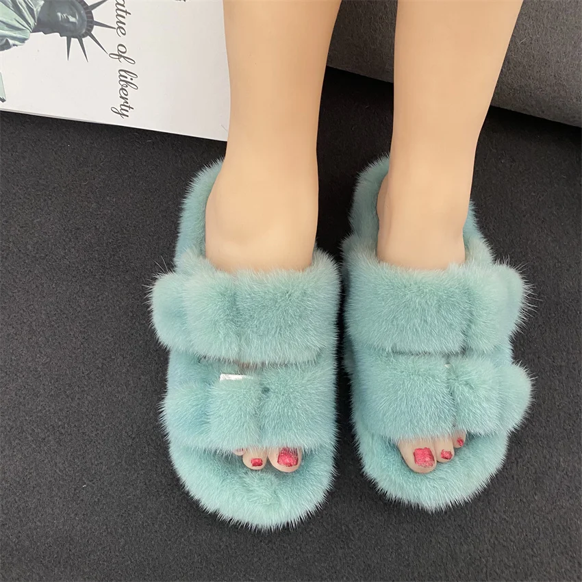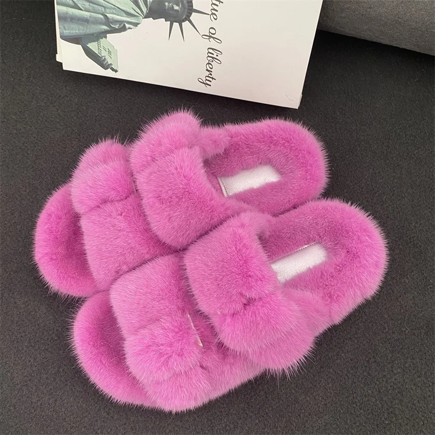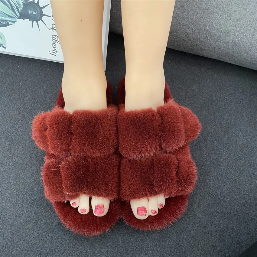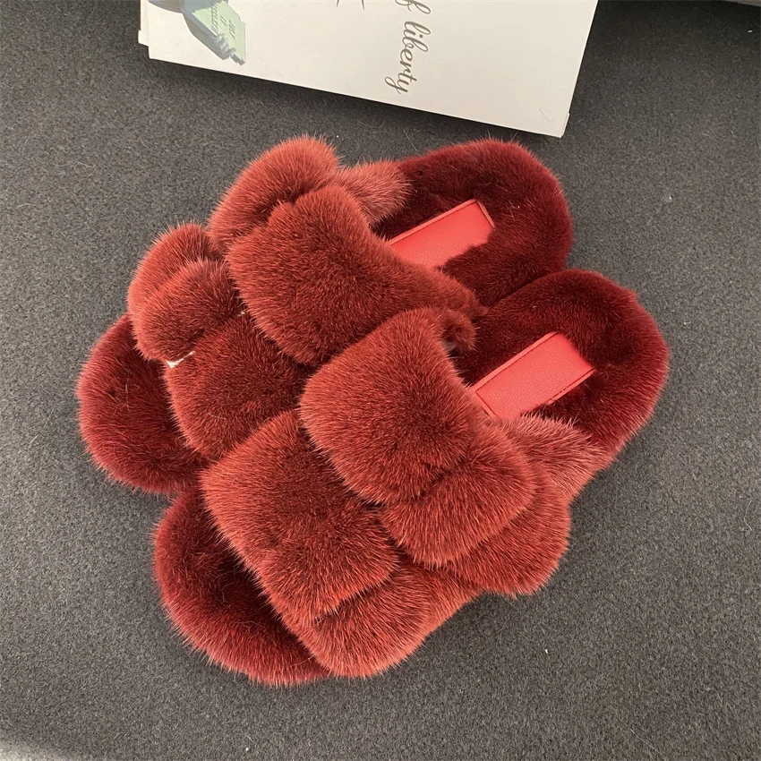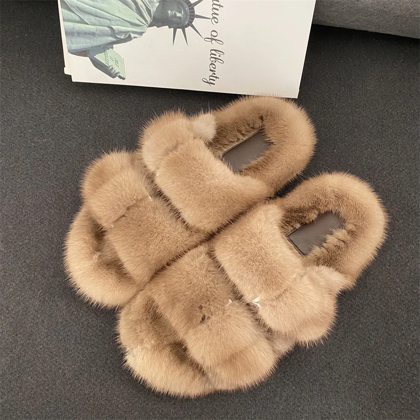 Модные роскошные меховые тапочки; Женская уличная повседневная обувь на плоской подошве