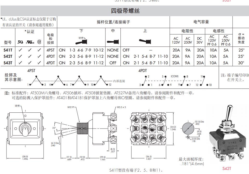 Оригинальные импортные из Японии, NKK S-42 25A125VAC высокий ток тумблер 12-контактный 2 шестерни тумблер кулисный переключатель ON-ON средней мощности четырехполюсных переключатель, оригинальный и аутентичный каждый с соответствующей гайка, коробка из 25 штук с подробной информацией и размерами