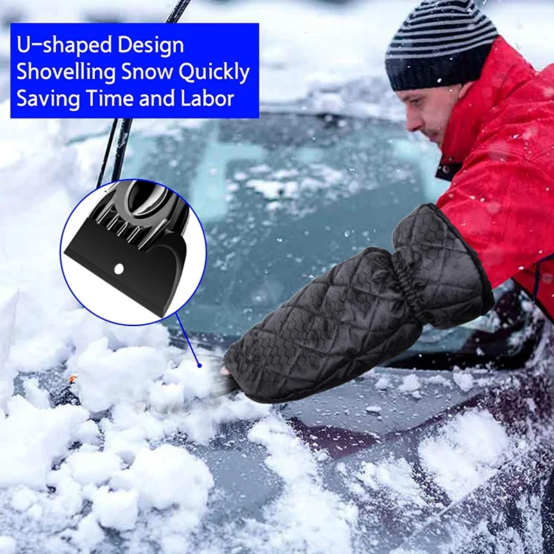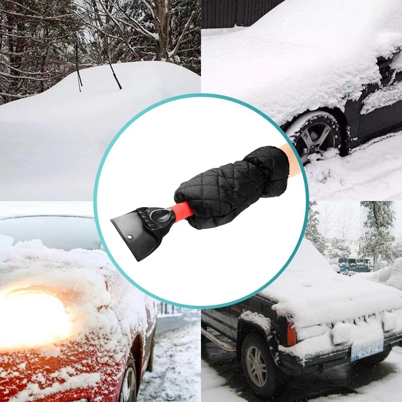 Прочный скребок: снежный скребок и ручка изготовлены из прочного АБС-пластика, который может максимизировать прочность лобового стекла снежного скребка перчатки без полировки вашего автомобильного стекла.