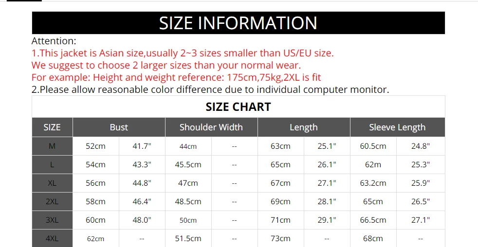 1. Пожалуйста, обратите внимание, что Ниже указаны Азиатские размеры, Азиатские размеры на 2-3 размера меньше, чем европейские, американские, пожалуйста, обратите внимание на подробные измерения в таблице размеров.