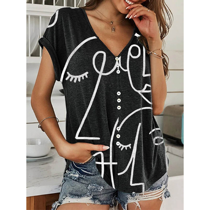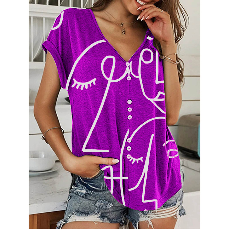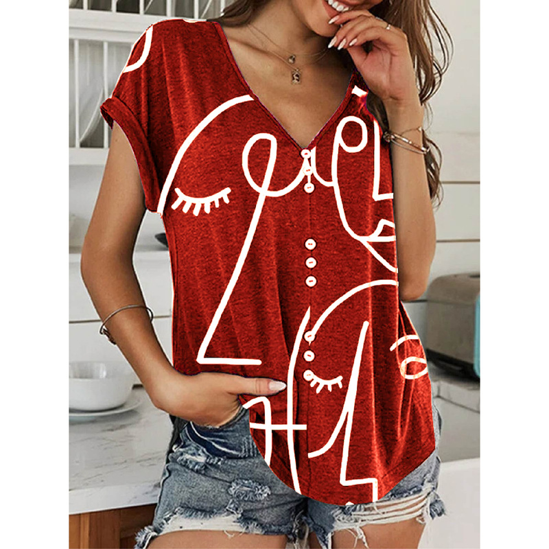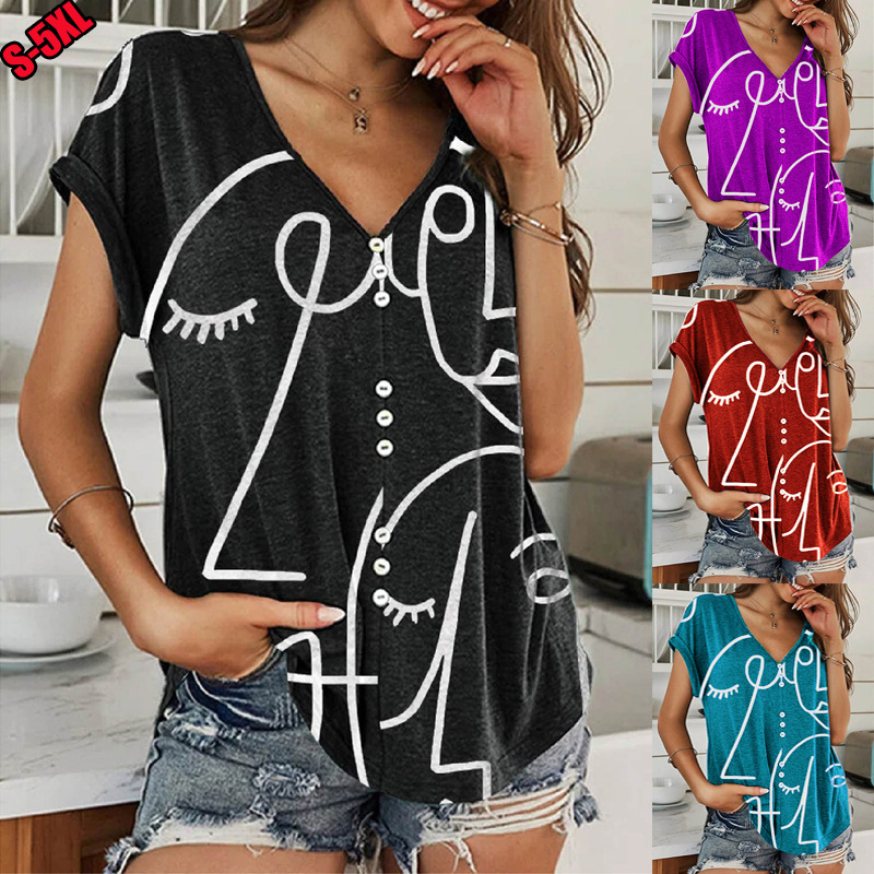 Качество на первом месте и самый лучший сервис. Все покупатели — наши друзья. Пол: Женский Тип изделия: одежда для футболок Длина: обычная длина рукава: короткий рукав стиль: Обычный Тип узора: принт воротник: v-образный вырез Стиль: Повседневный, свободный материал: хлопок, полиэстер.