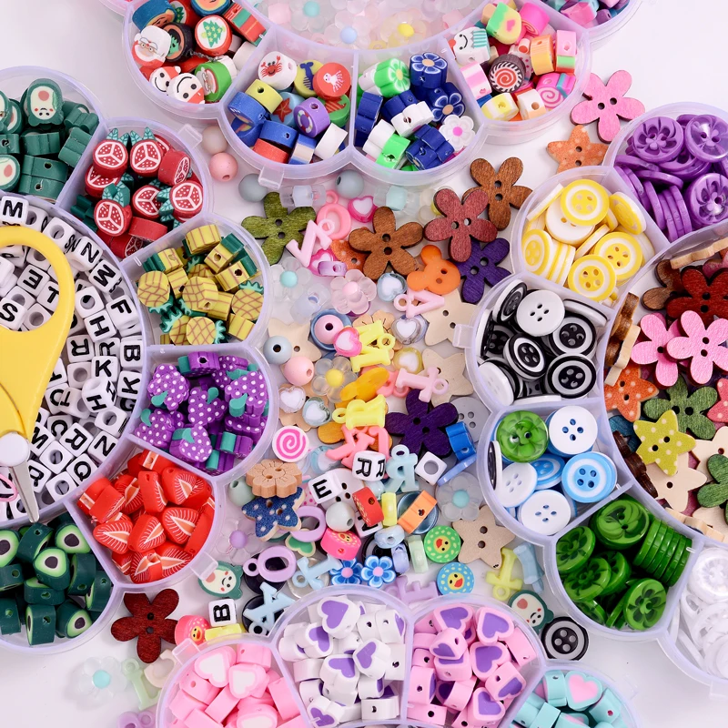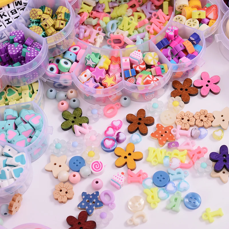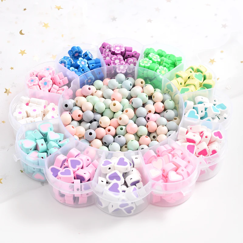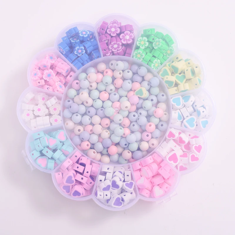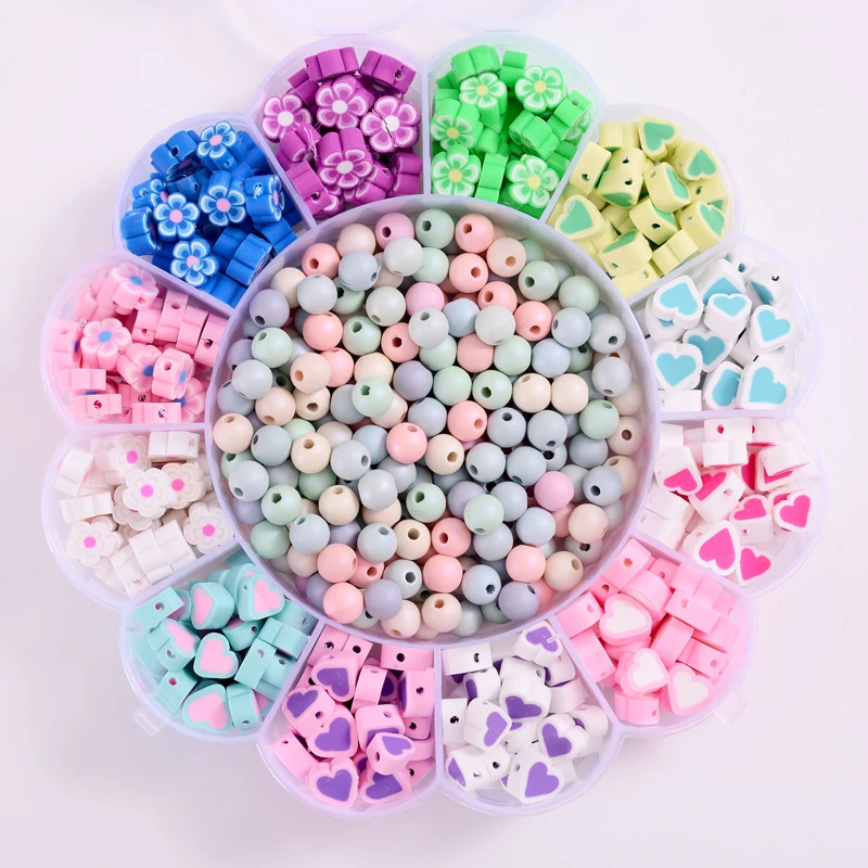 С украшением из цветов, наряд с принтом «сердце» с Форма из полимерной глины, бусины с большим отверстием для изготовления украшений своими руками, ожерелье, браслет, серьги ювелирных изделий Изготовление приблизительно 620 шт./кор.
