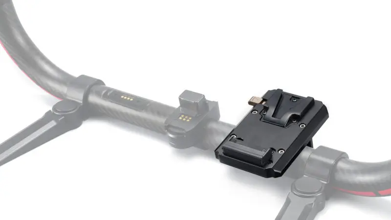 Эта пластина для аккумулятора с v-креплением крепится непосредственно к основному или передовому кольцу для RS 2 и позволяет заряжать карданный шарнир с более высокой емкостью V-Mount батарей без внешних кабелей.