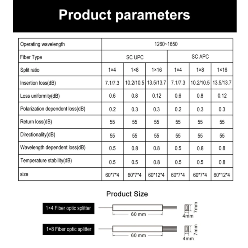 28EA Низкая потеря вставки одномодовый 0,9 мм волоконный сплиттер 1X8 FTTH работает для одномодовой оптоволоконной системы связи
