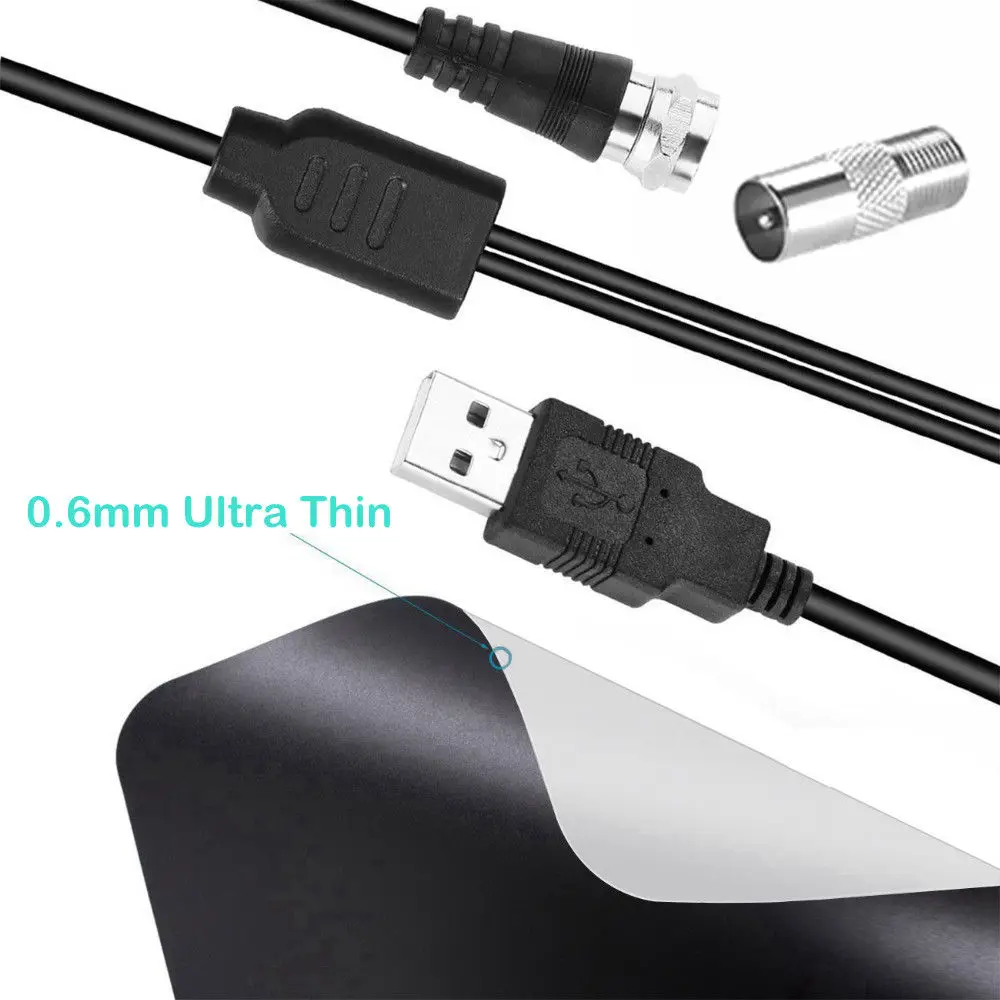 1. Рабочая частота: VHF (172-240 МГц) UHF (470-860 МГц) КСВ: ≤ 1,5 3. Сопротивление: 75 4 4. Коэффициент усиления LNA: 25 дБ 5. 6. Диапазон приема: 80 миль. Размер: 220*140*1,1 мм 7. Кабель: 4 м 8. Разъемы: Универсальные 9. Поляризация: линейный 10. Напряжение: 5 В 11. Разъем питания: USB 12. Потребление тока: 20 мА 13. Рабочая температура: -45 85 85 14 14. Температура хранения: -45 85 85 15 15. Совместим с 720p, 1080i, 1080p