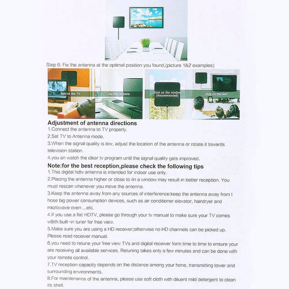 Эта усиленная антенна может использоваться для всех бесплатных HD программ, включая Местные новости, погоду, sitcoms, Детские и спортивные программы, абсолютно бесплатно с помощью вещания tower. Просто подключите антенну к телевизору и позвольте ей сделать все возможное.