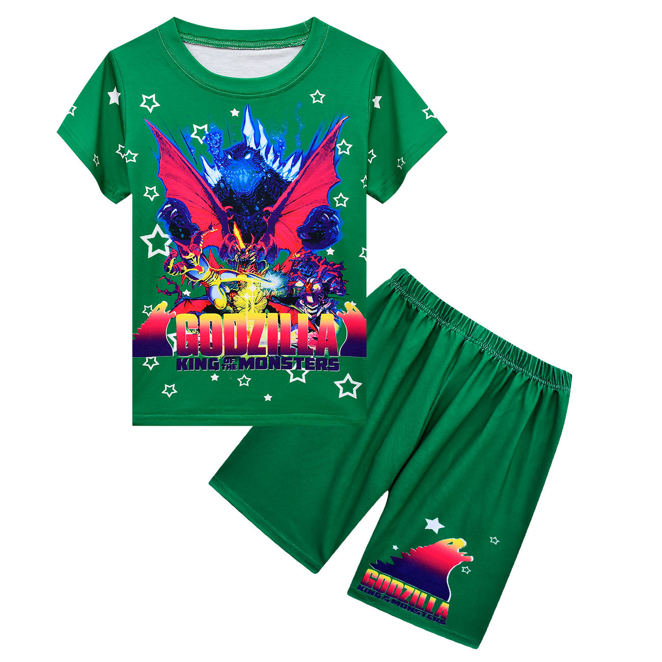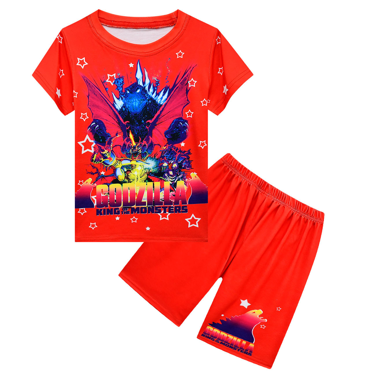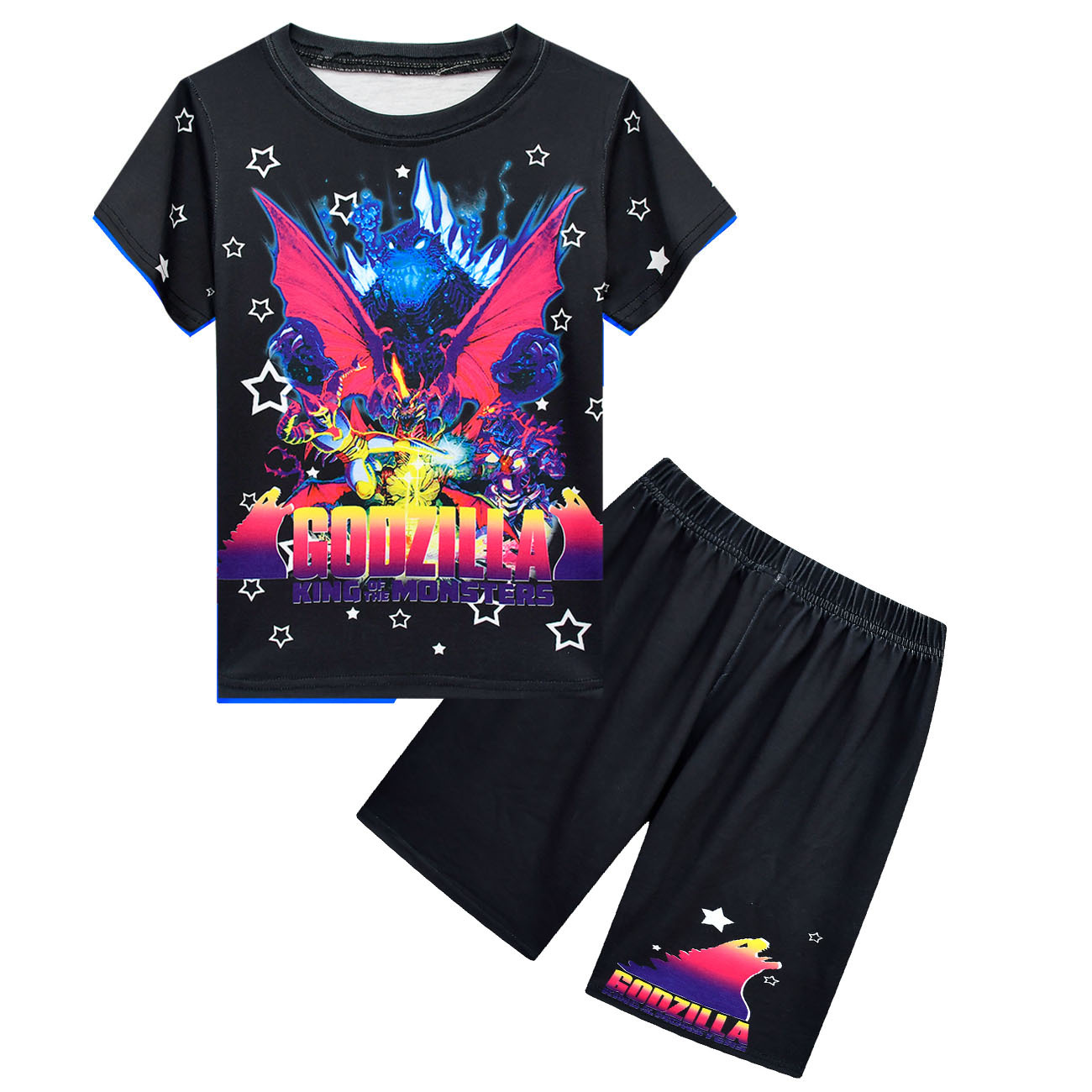 Godzilla Vs King Kong/Детские шорты с короткими рукавами комплект из 2 предметов, футболка для мальчиков и девочек, футболка с 3D принтом летний костюм с молодежными шортами для подростков