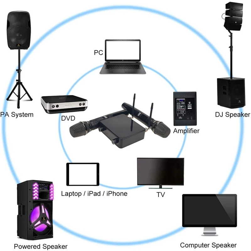 1. Профессиональная и интеллектуальная двойная Беспроводная микрофонная система, избегайте помех