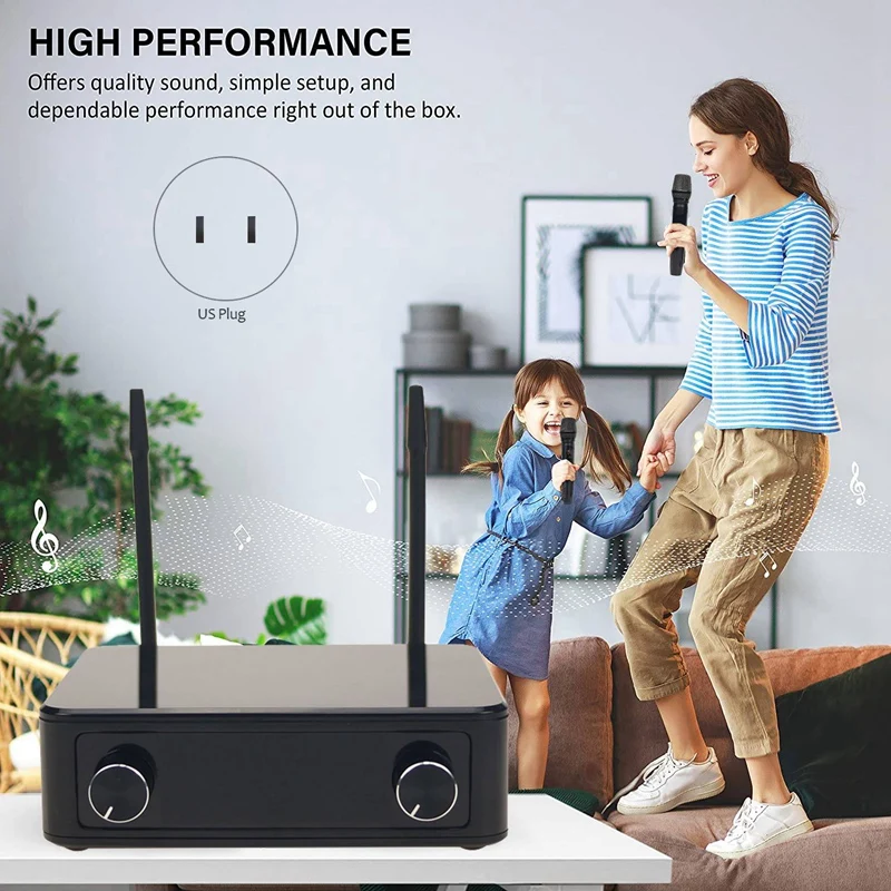 3. Двухканальные каналы разработаны, две руки держат каждый два микрофона одновременно, чтобы спеть без каких-либо тревог, вызванных.
