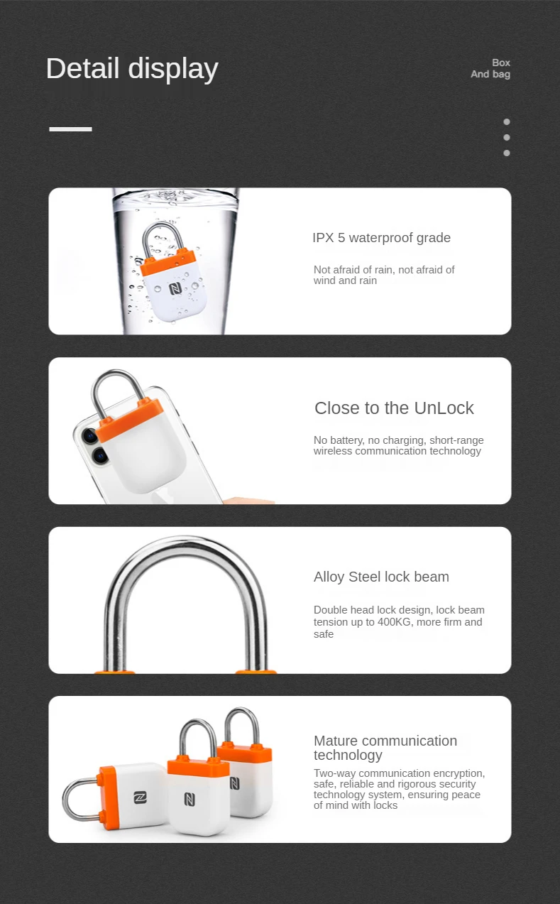 Луч замка этого продукта-нержавеющая сталь 304, а корпус замка-АБС-пластик, который немного легче, чем традиционные навесные замки с точки зрения общего веса.
