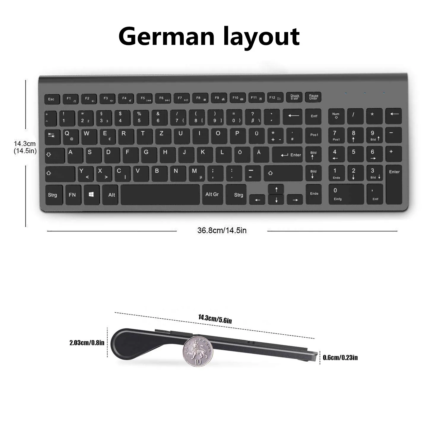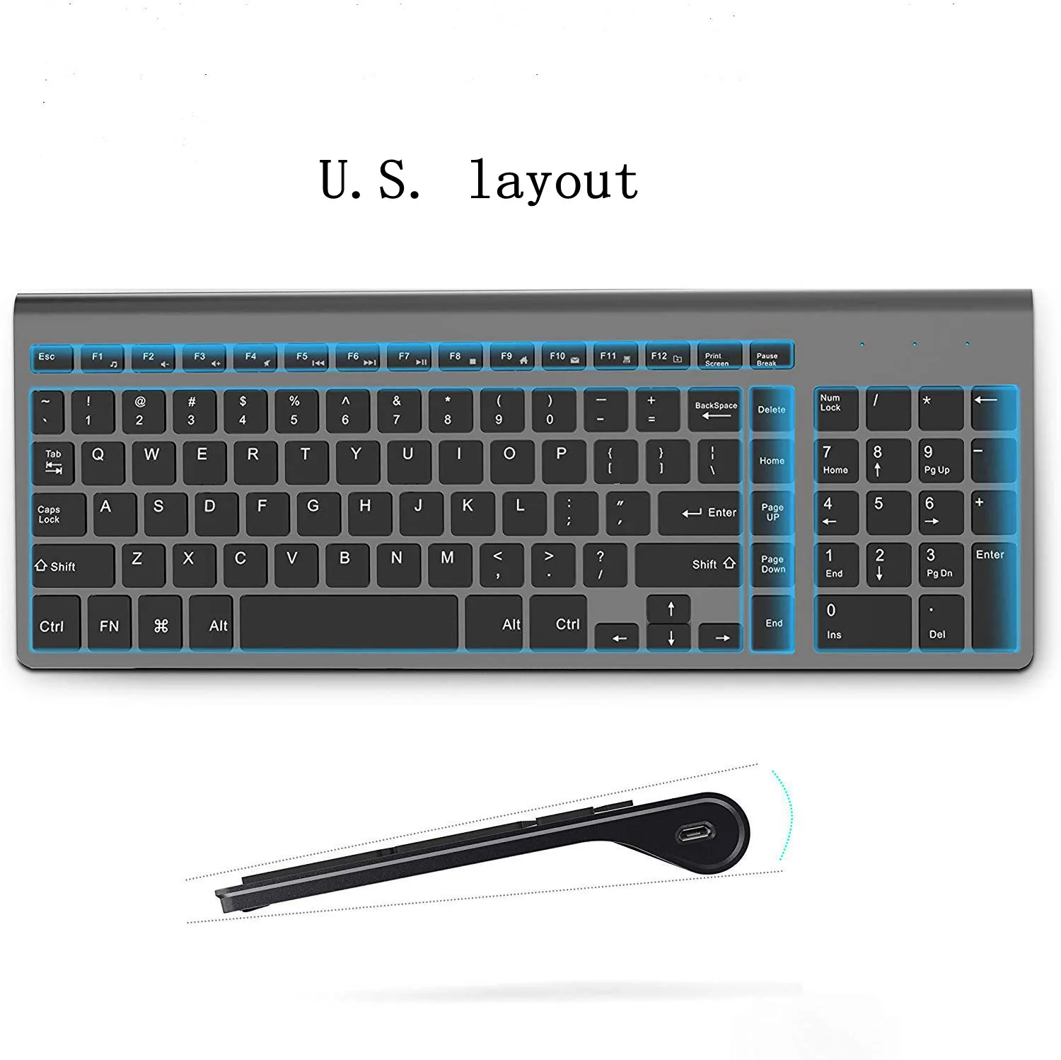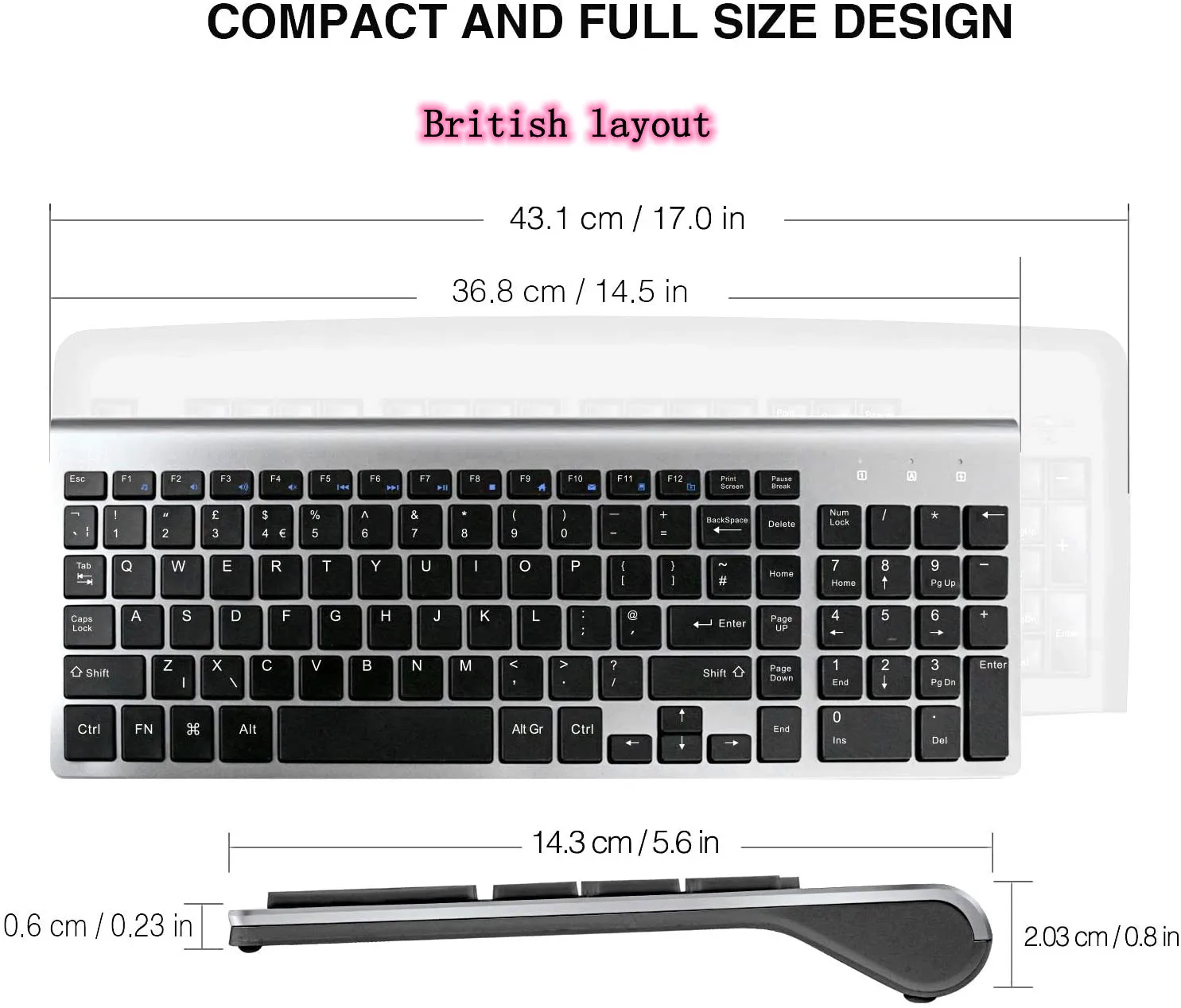 ● Тонкая и компактная клавиатура с цифровой клавиатурой. Беспроводная клавиатура имеет все клавиши в ножничном кресте низкопрофильной конструкции; Что делает ее ulra-slim (ход по клавишам 2 мм), отзывчивой и меньший уровень шума. И вы можете использовать цифровую клавиатуру для быстрого ввода и ввода данных, без проблем с вводом цифр.