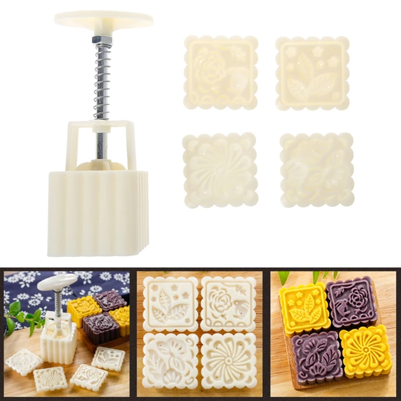 K5DC 4 цветок марки Луна Форма для украшения торта DIY Кондитерские квадратные Mooncake плесень инструмент 75 г