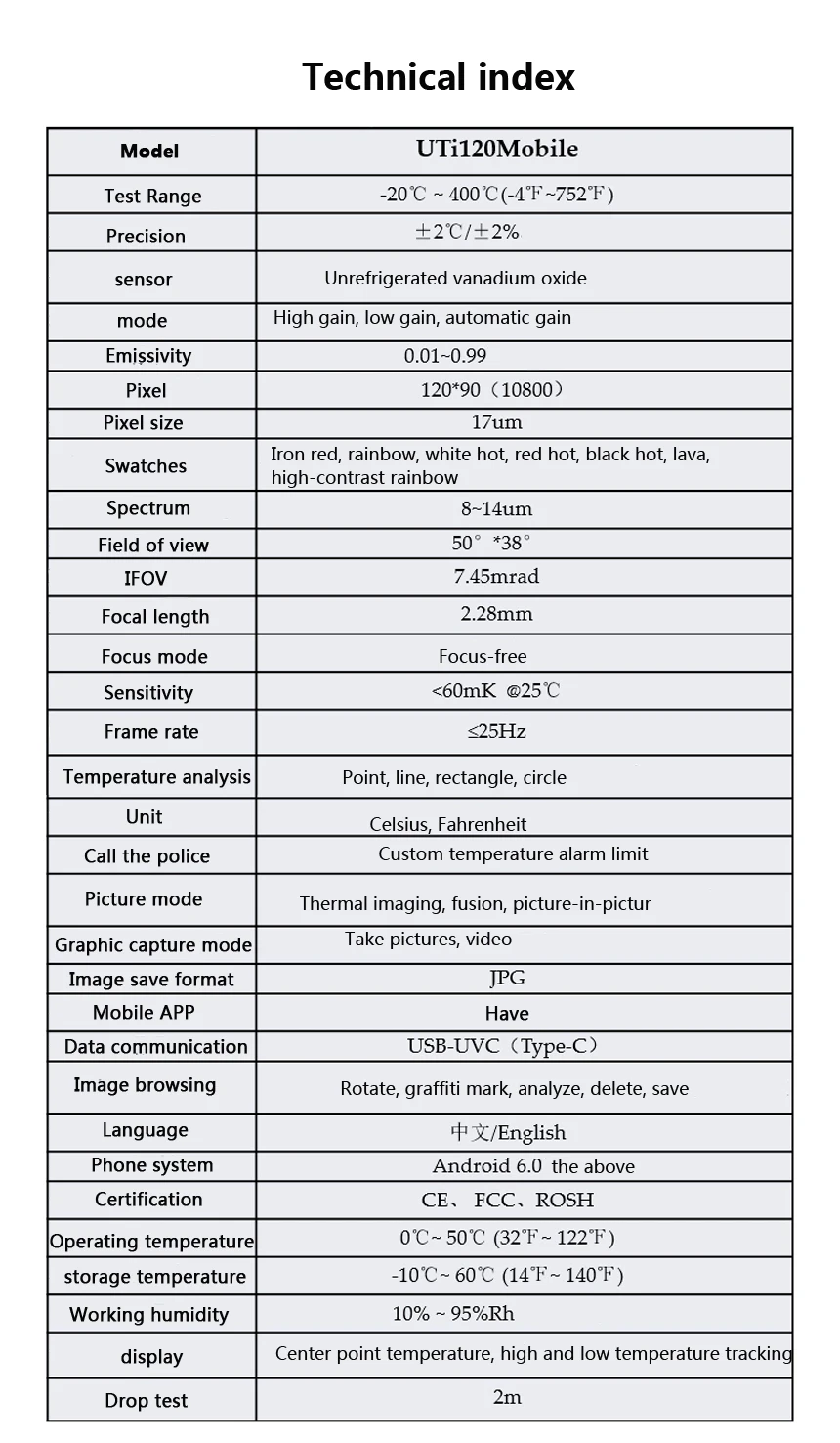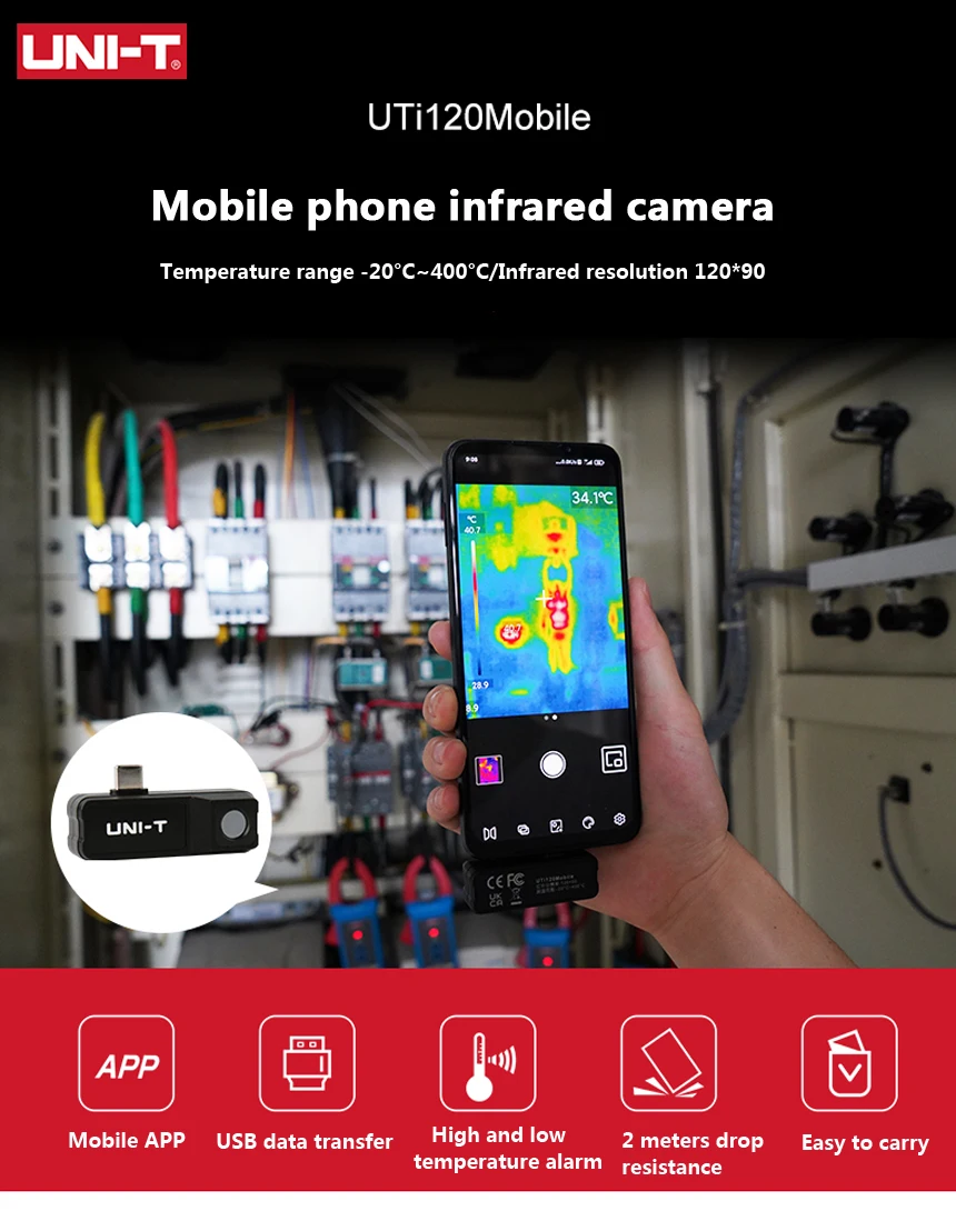 Uti120mobile-тепловизор для смартфонов. Этот продукт имеет небольшие размеры, удобен для переноски и удобен в эксплуатации. Используйте rs, чтобы быстрее и проще найти проблемы. Uti120mobile обладает четкими изображениями, высокой скоростью отклика и может определять температуру до 400 °C. Это незаменимый инструмент для проверки распределительных плат, устранения неисправностей при атаках или устранения скрытых источников тепла внутри и снаружи дома.