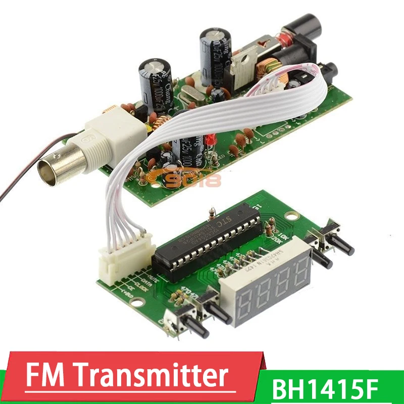 Плата передатчика использует двухстороннюю усовершенствованную доску BH1415F (размер 82x44x20 мм) и контрольную доску SCM (размер 66x42x20 мм) Две пластины, рабочее напряжение 12 В, высокочастотная схема с использованием PLL FM стерео передатчика IC BH1415F, рабочая частота супер стабильная, не потому, что индукция человека и другие факторы вызывают Смещение частоты, Все кнопки, с цифровым дисплеем частоты.