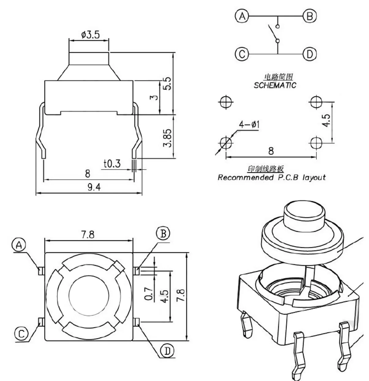 Сенсорный переключатель 8*8*5 мм Silent Button 8x8x5 мм 4 фута контактный Проводящий силиконовый микро кнопочный переключатель 4pin для сборки печатной платы