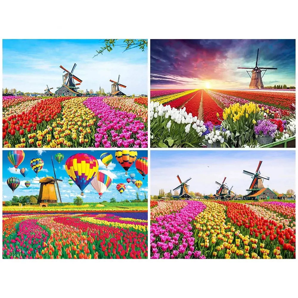 Drill Area:Full Square/round diamond mosaic Flower Landscape