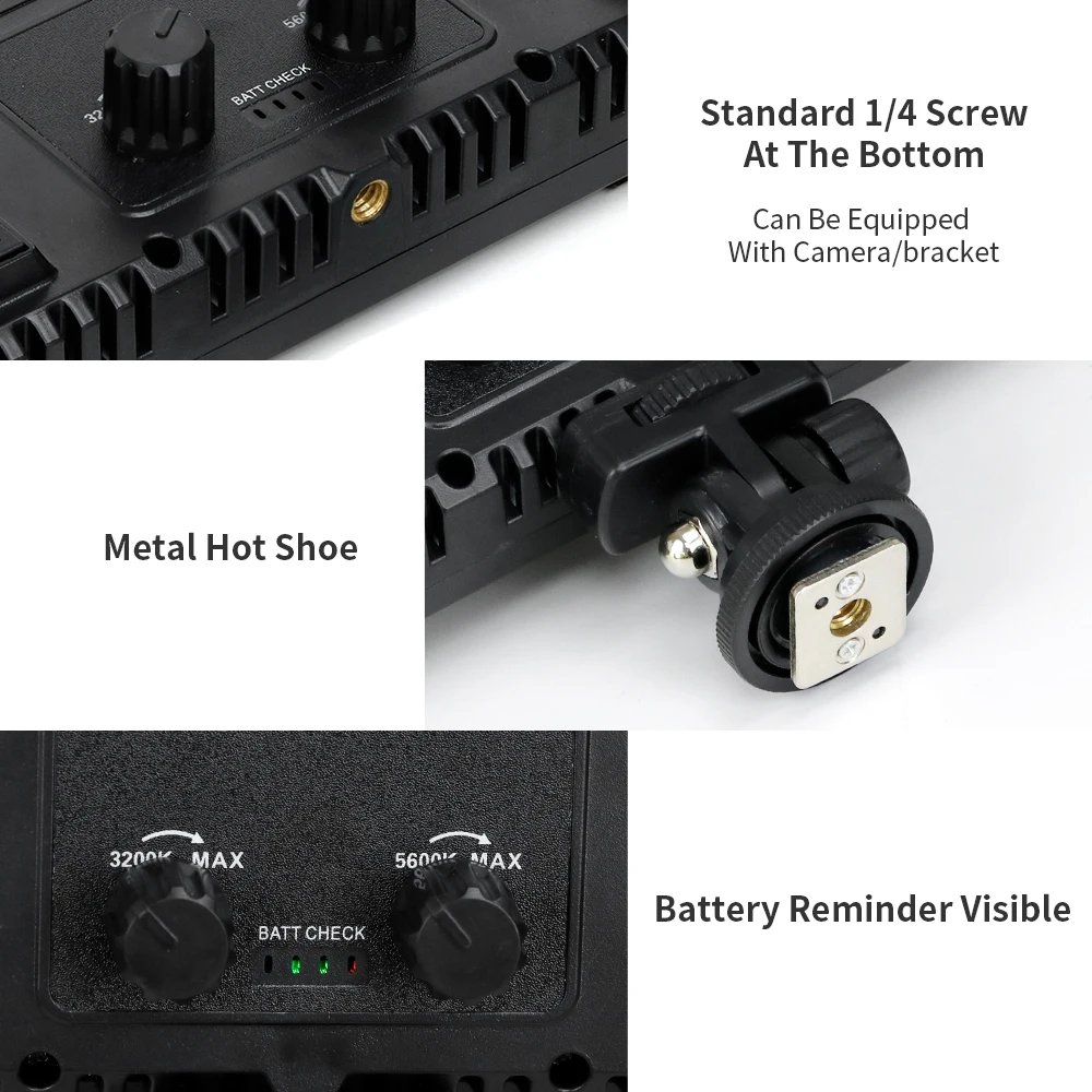 1.With Its Lightweight And Durable Construction, You Can Carry This Light Around With You Wherever You Go.2.Features With 2 Separate Knobs On The Panel Back For Adjusting Color Temperature And Brightness.3.White Filter Can Make Soften The Light Source And Enhance Skin Tone In Portraits Photography.4.Adjustable