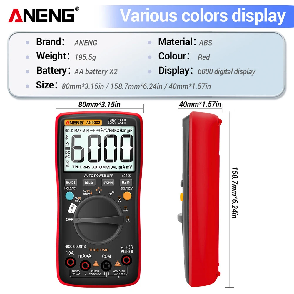 ANENG AN9002 True RMS цифровой профессиональный 6000 отсчетов Bluetooth-совместимый Multimetro AC/DC тестер напряжения тока авто-Диапазон мультиметр