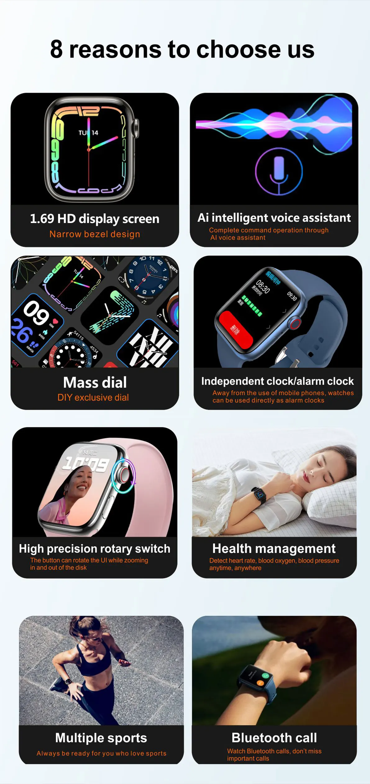 3. Bluetooth музыка и вызов: часы подключаются на мобильный телефон через Bluetooth и могут управлять воспроизведением музыки на мобильный телефон. Часы могут воспроизводить музыку и звонить, а также наслаждаться музыкой в океане во время упражнений!