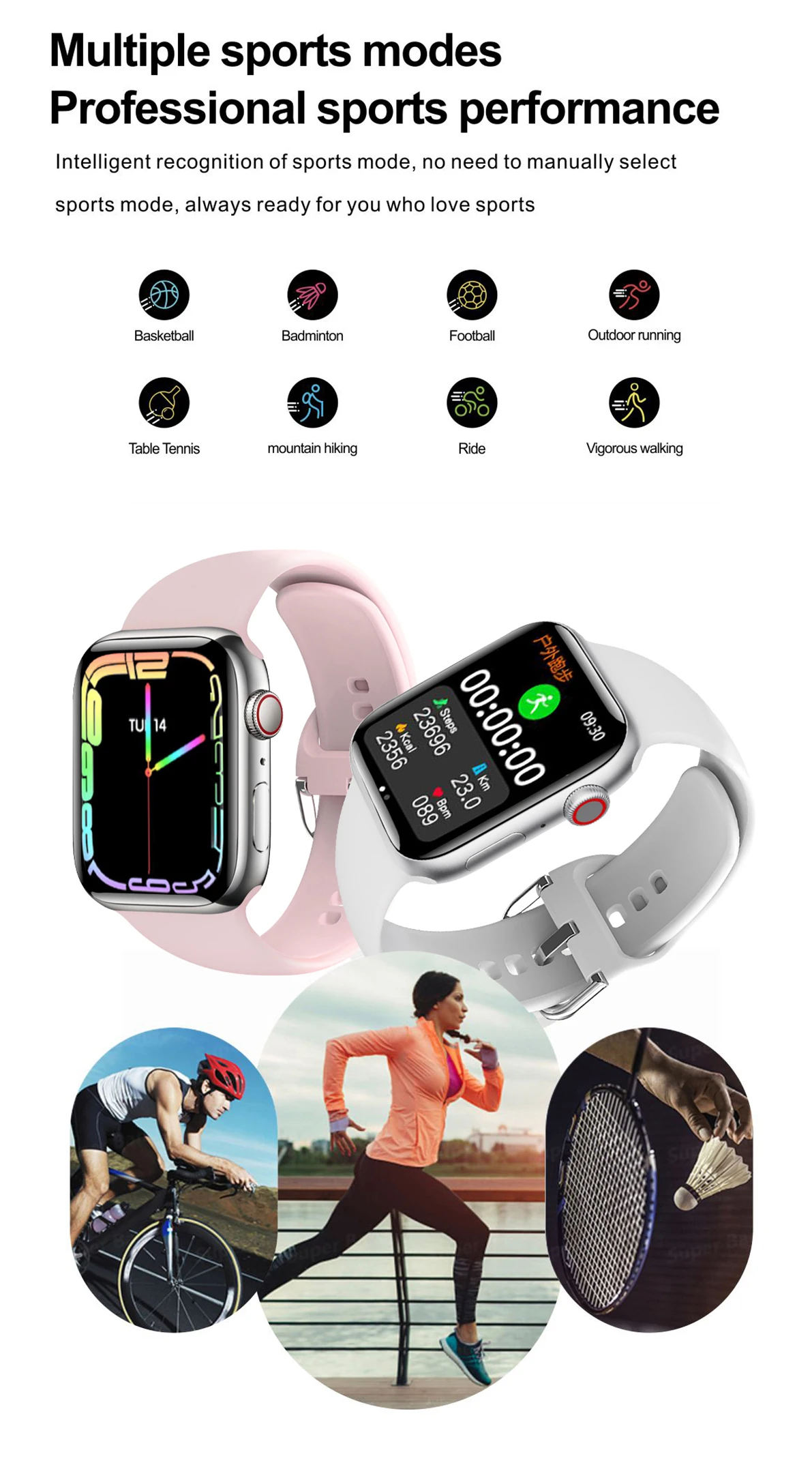 1. Несколько спортивных режимов: Поддержка ходьбы, бега, отжиманий, сидений, езды на велосипеде, бесплатного обучения и т. д.