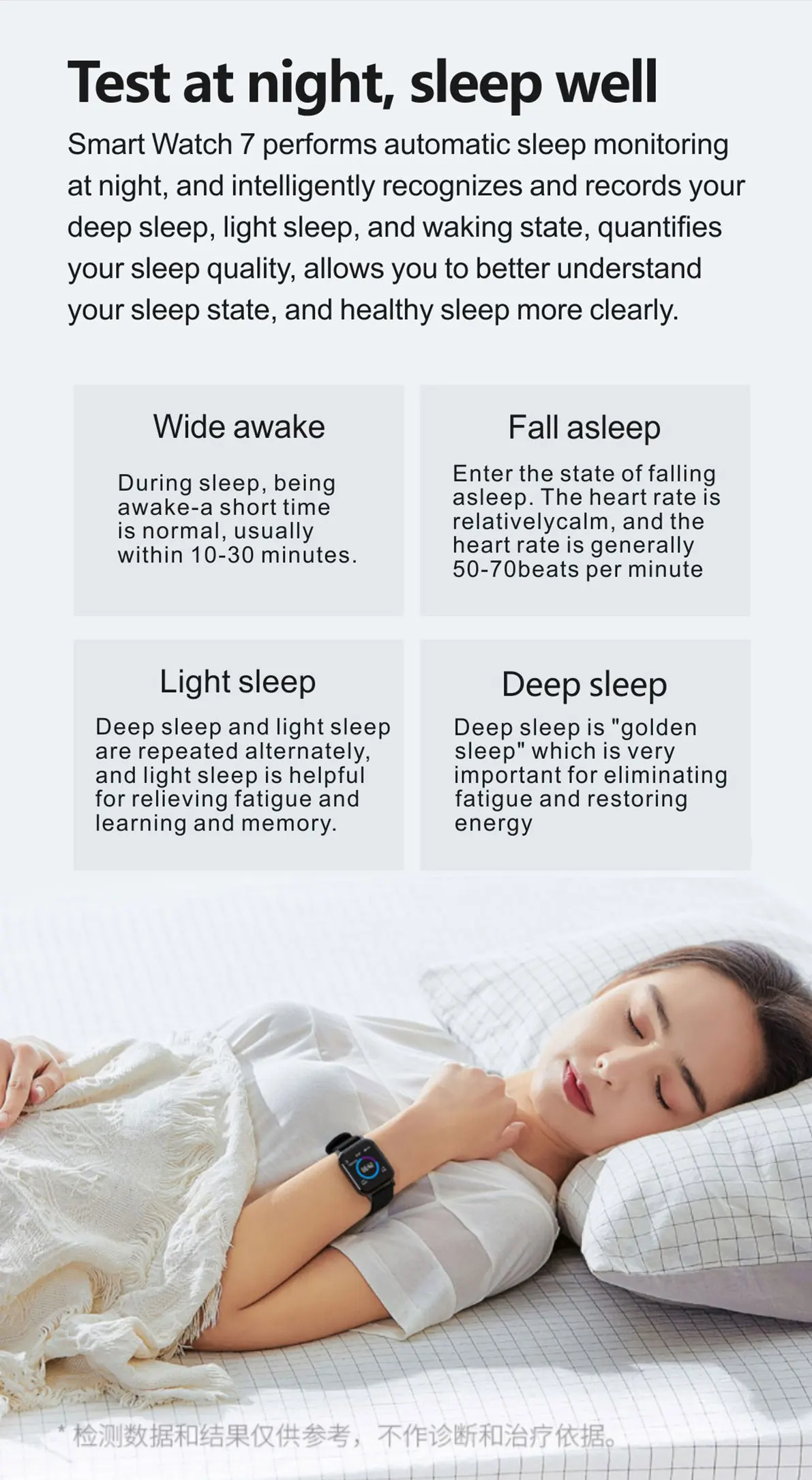 1. Носимые устройства отслеживают деятельность человека с помощью электронных датчиков, и они находятся на потребительском уровне. Это нормально для определенных отклонений. Пользователь должен рассматривать данные объективно. Пожалуйста, не сравнивайте с больничным оборудованием для чтения, это не медицинское устройство!