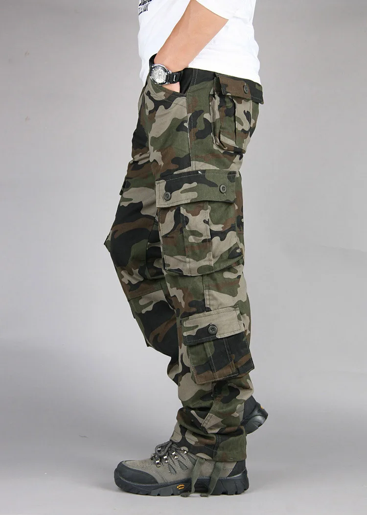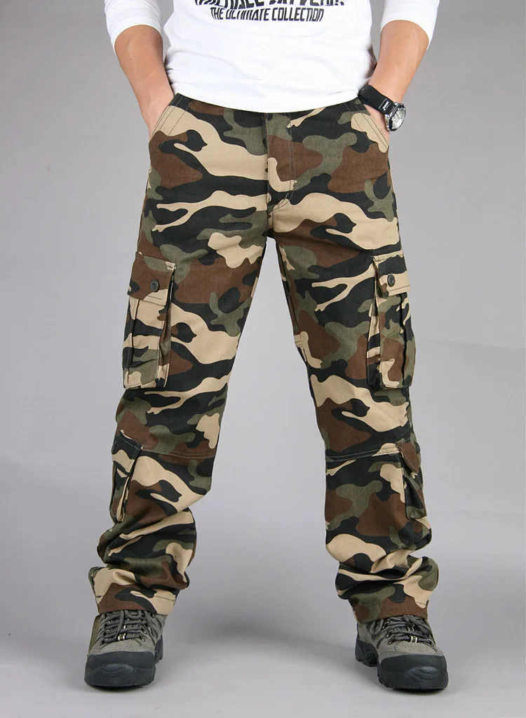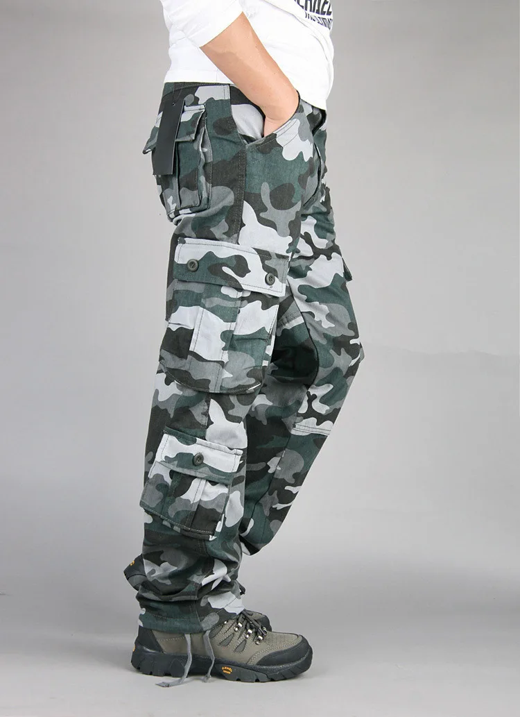 Мужские камуфляжные брюки-карго, повседневные, с несколькими карманами, мешковатые, армейские длинные брюки, комбинезоны, военные тактические штаны, большие размеры 44