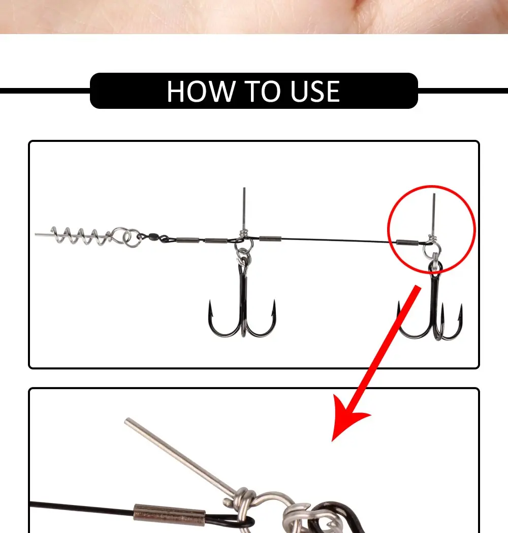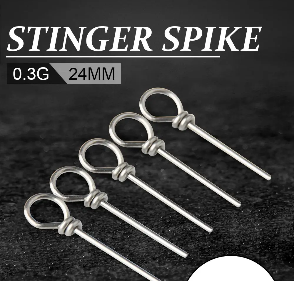 Stinger spike обрезается до напряжения stinger или лидера для того, чтобы зафиксировать его и держать его на месте и сделать ваши крючки висят свободно под приманкой. Это дает вашей приманке лучшую производительность и предотвращает вас от повреждения при руле вашего улова.