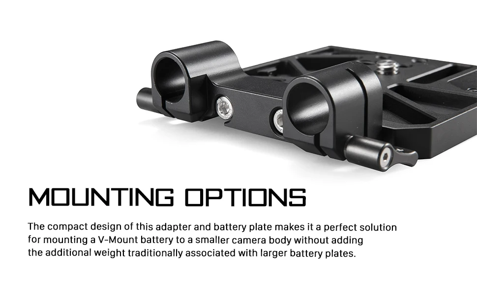 Благодаря компактному дизайну этого адаптера и аккумуляторной пластины он станет идеальным решением для крепления аккумулятора с v-креплением к маленькому корпусу камеры без добавления дополнительного веса, который обычно ассоциируется с более крупными батарейными пластинами.