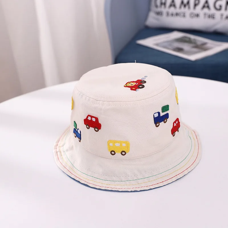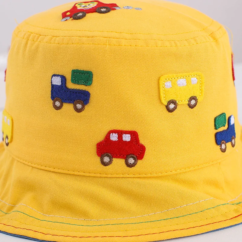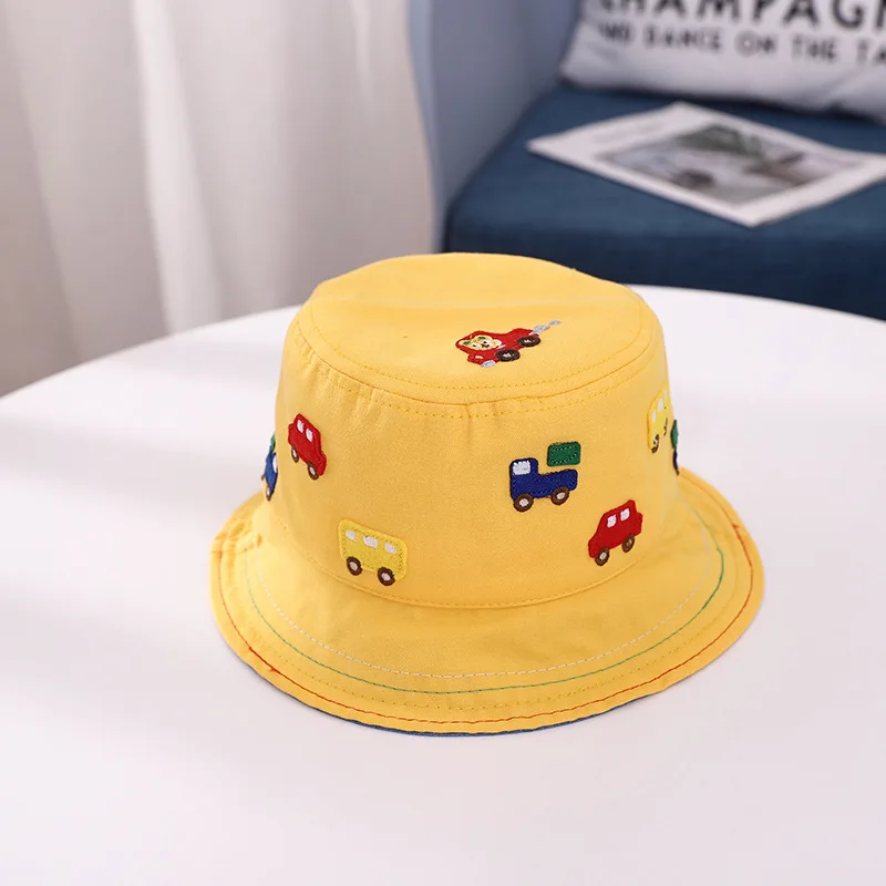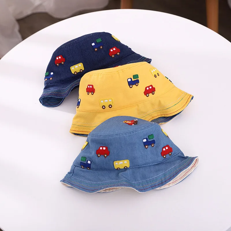 Весенне-осенняя Панама с мультяшными автомобилями для девочек и мальчиков, модные шапки для рыбаков, Детские уличные панамские шляпы от солнца, От 1 до 2 лет