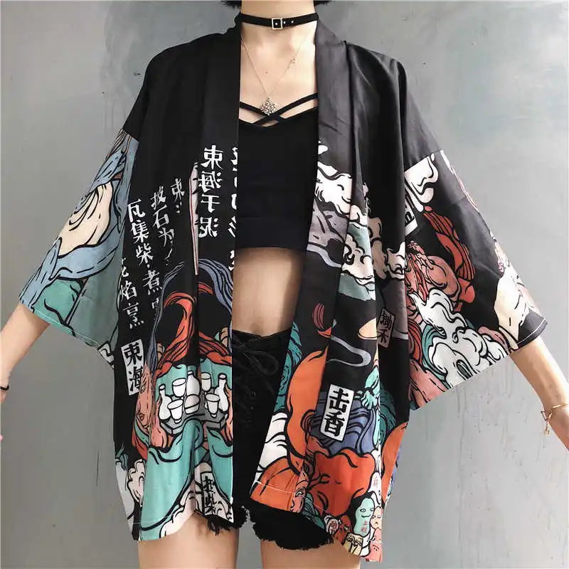 Кимоно yukata kimino haori кимоно для мужчин черный японский топ с принтом Япония