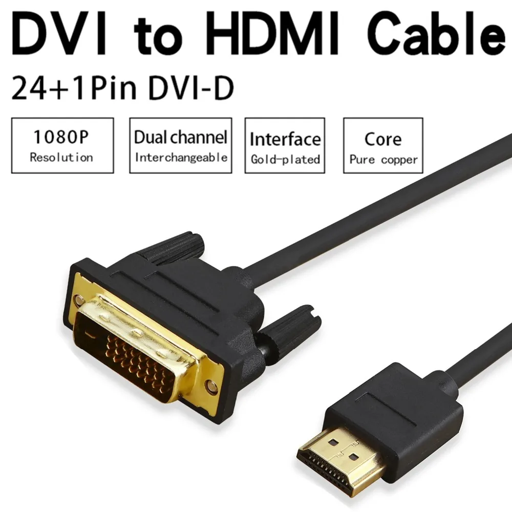 Высокоскоростной HDMI-совместимый с DVI-D (24 + 1) кабель адаптера позволяет подключать совместимые с HDMI устройства, такие как Blu-ray, Xbox 360, PS3, Apple TV, DVD, И приставка к телевизору с поддержкой DVI HD, дисплеям, проекторам и многому другому. Кроме того, вы также можете использовать его для подключения устройств источника DVI, таких как ноутбук/Рабочий стол к HDTV и дисплеям с интерфейсом, совместимым с HDMI, с высоким разрешением. Подходит для Конференции, видео, образования и игр, Легко Наслаждайтесь внешним дисплеем.