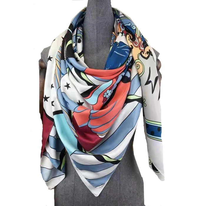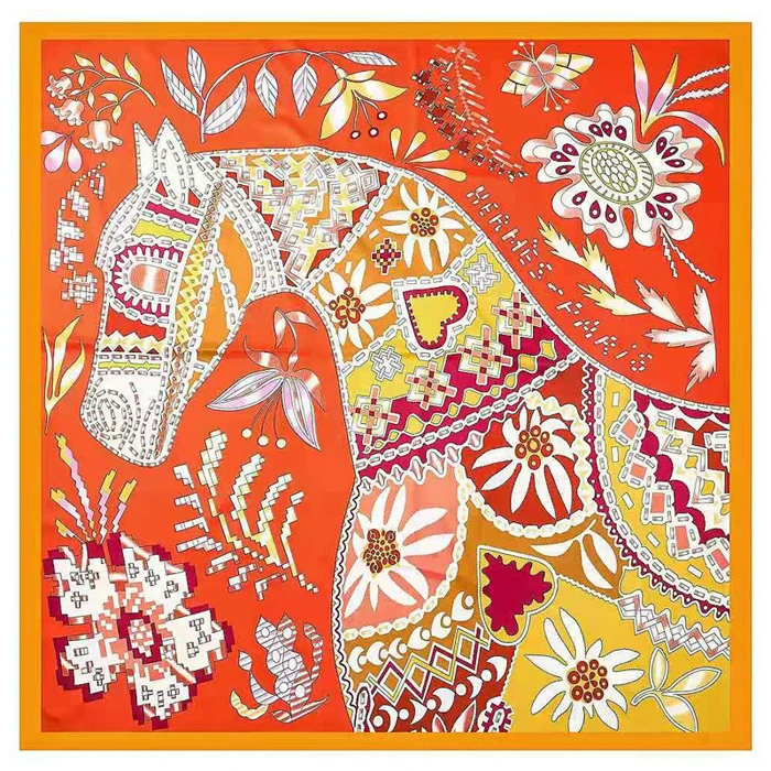 Роскошный брендовый саржевый шелковый шарф для женщин в стиле ретро, квадратные шарфы для лошадей, шарфы для женщин, шали, бандана, хиджаб 130*130 см