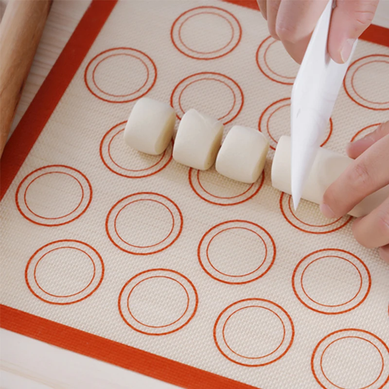 ** Non stick mat: Reusable non-stick silicone mat can be prepped on a sheet pan or your countertop. It features non-stick design, allowing macarons to slide easily off this mat