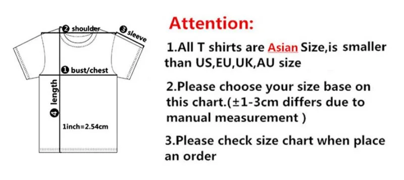 Примечание 1. Наша футболкаАзиатские размеры, меньше, чемЕвропейские/американские размеры, пожалуйста, выберите больший размер.