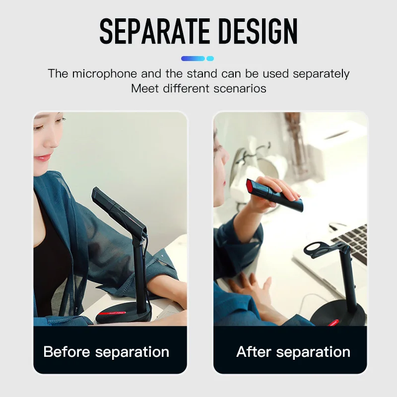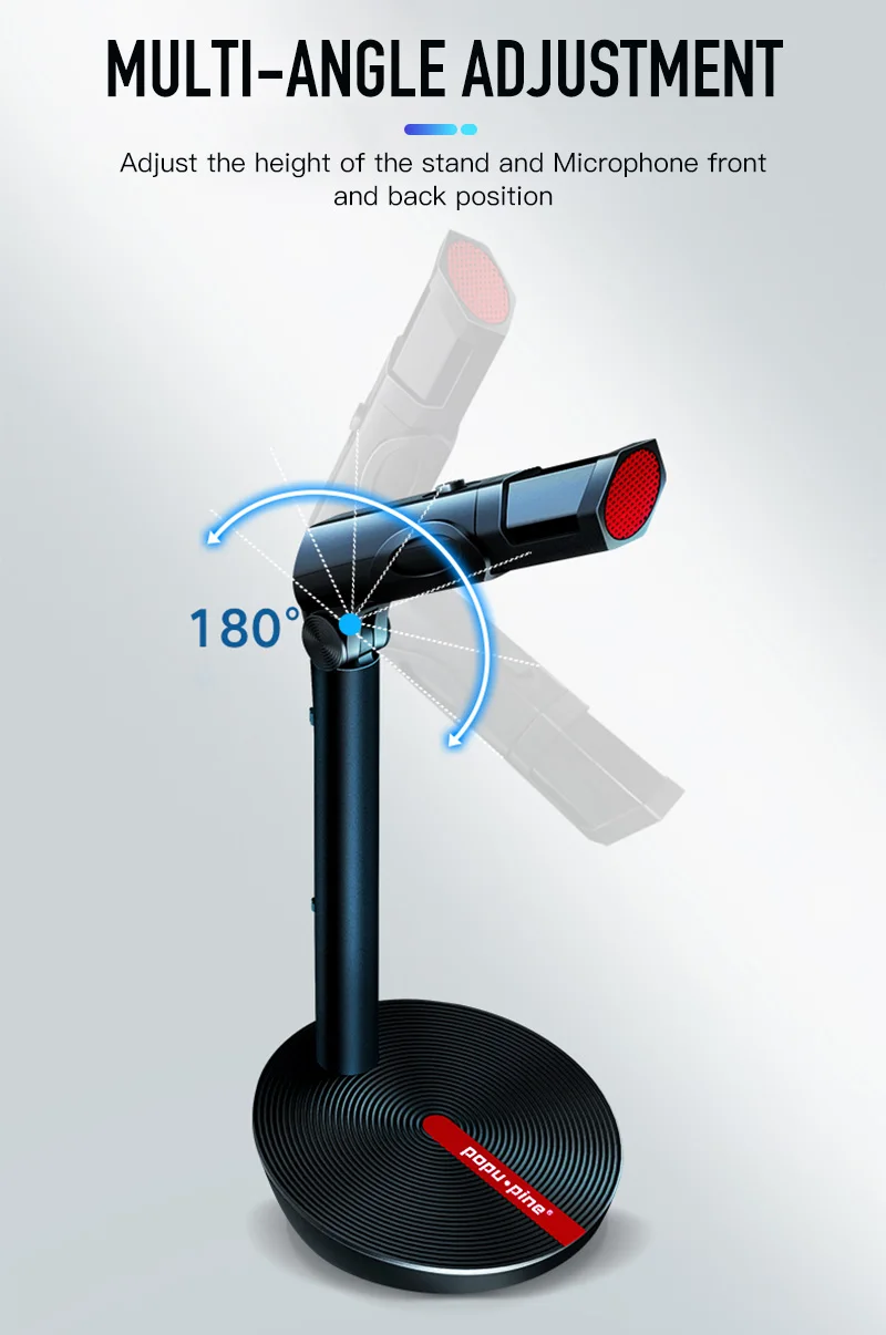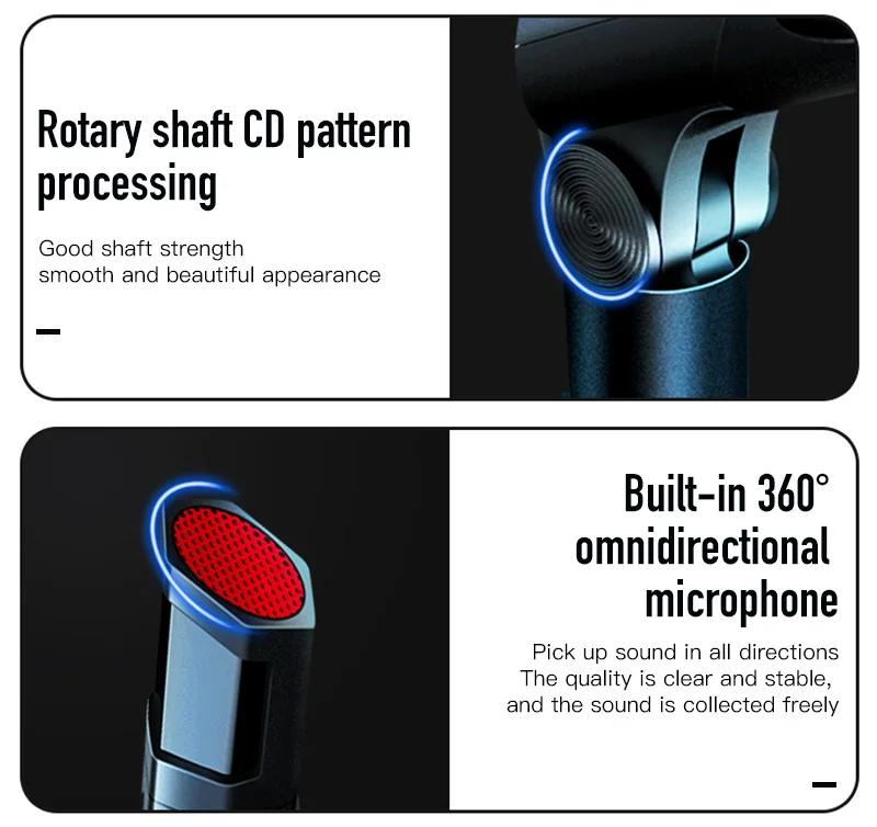 4. Часть микрофона является гибким дизайном, а часть держателя вращается на 360 градусов, пожалуйста, проверьте следующие фотографии.