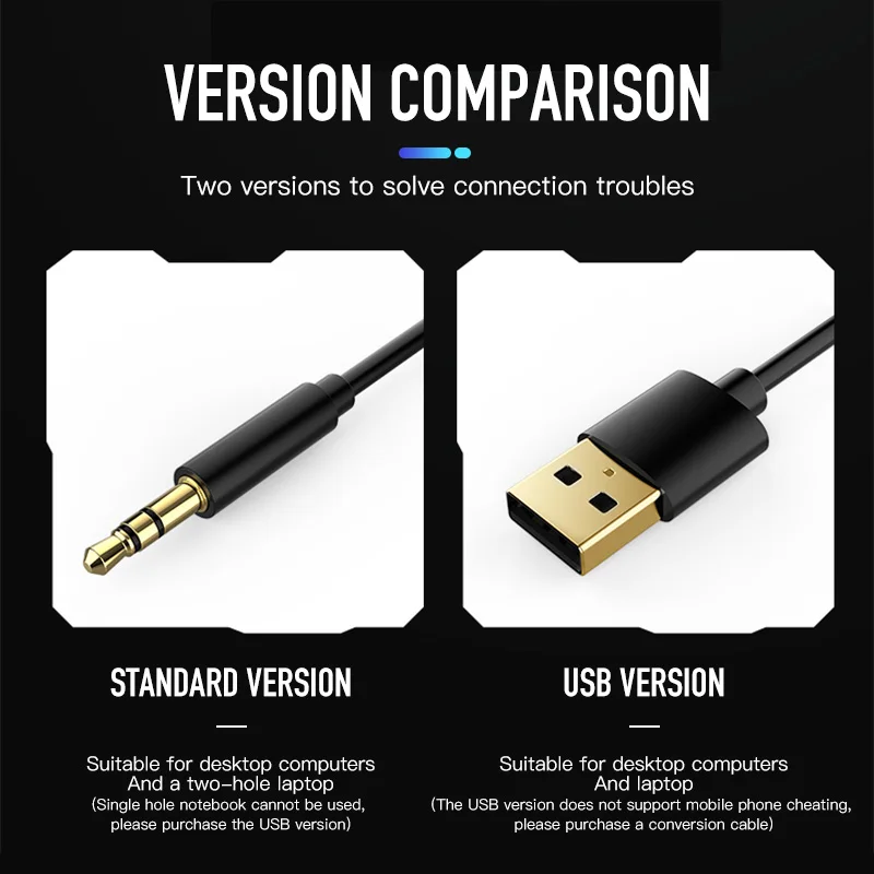 Примечание: у этого товара есть 3,5 мм и usb версия, 3,5 мм версия независимый переключатель дизайн, USB версия без данные кабели, легко носить с собой.