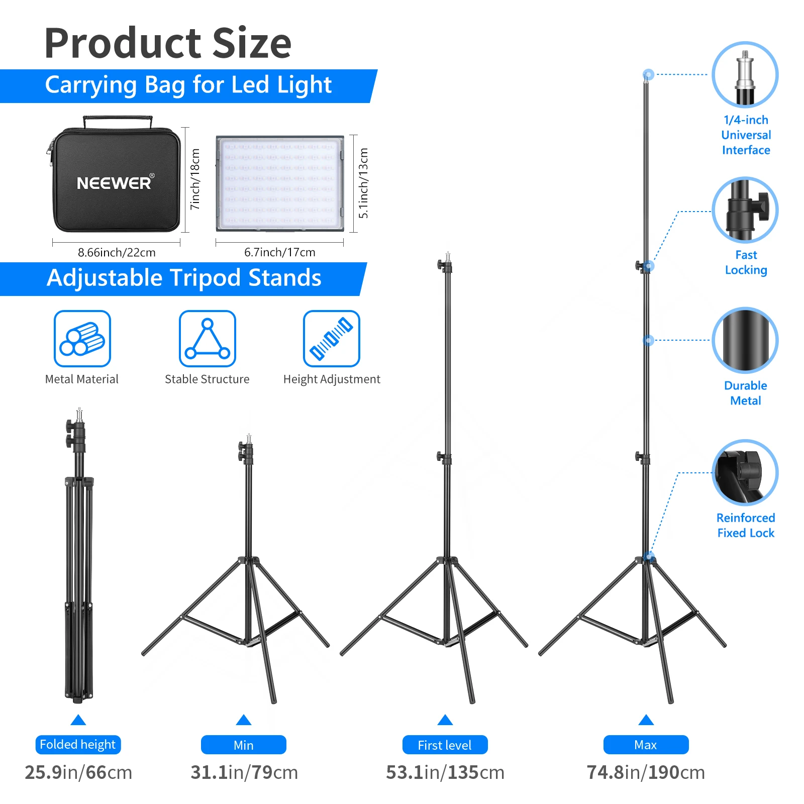 С 192 высококачественными светодиодными бусинами RGB190 обеспечивает постоянное освещение без мерцания с бессчетным количеством световых цветов по всему спектру, идеально подходит для фотосессий на открытом воздухе/в студии, vlogging,Zoom meetings и видеоигр