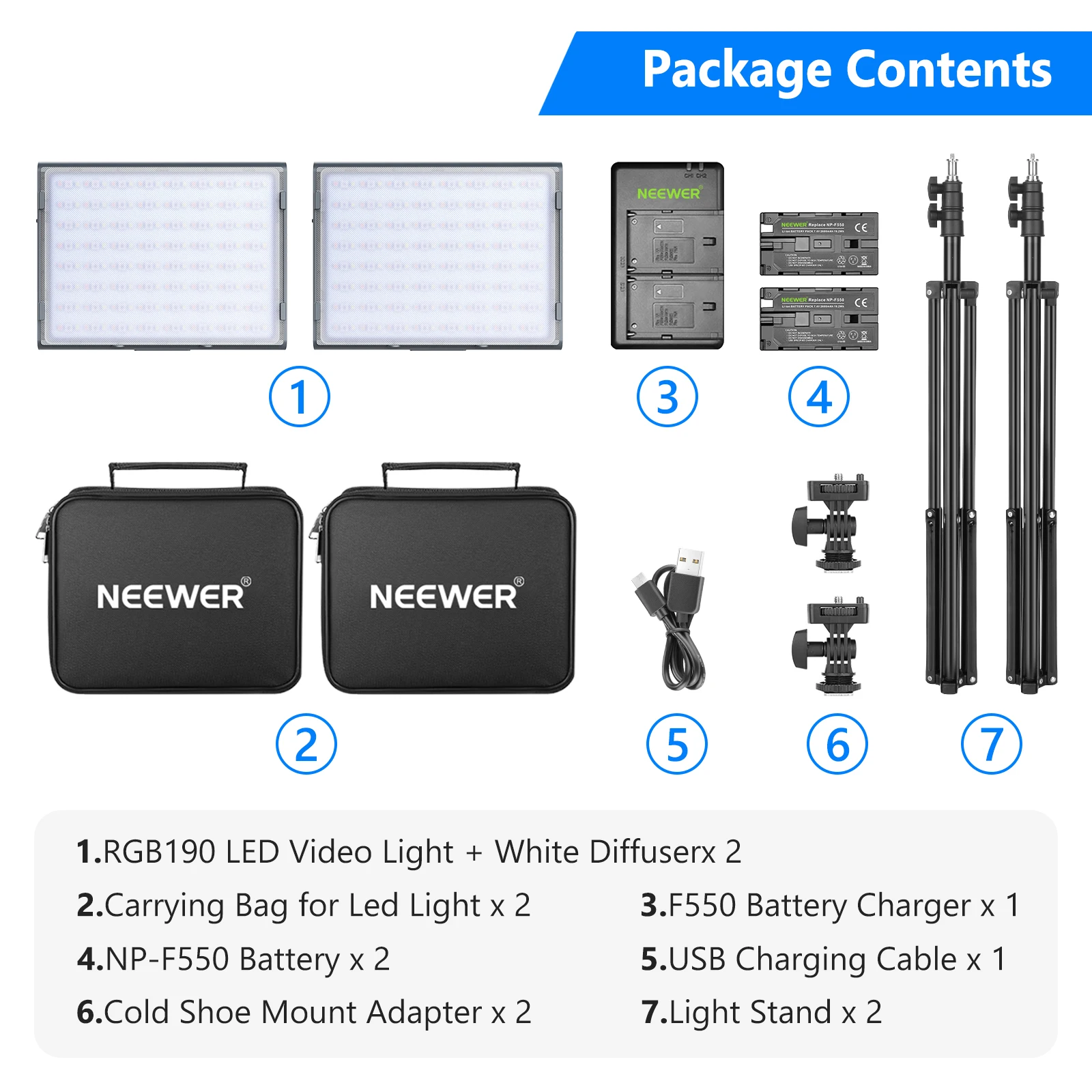 Neewer 2-Pack RGB190 Светодиодная лампа для видеосъемки с комплектом батарей-Контроль приложения, регулировка насыщенности цветового оттенка на 360 °, CRI97 + 3200 ~ 5600K 9 RGB световая Светодиодная панель для освещения YouTube