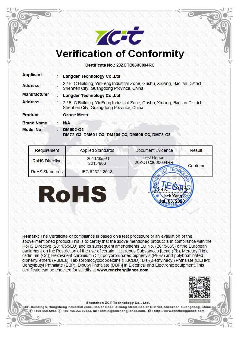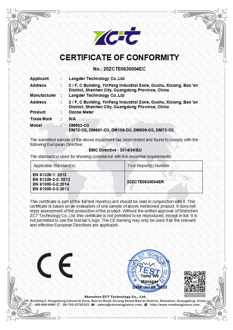 ● Содержание теста: O3 + PM2.5 + TVOC + температура + Влажность