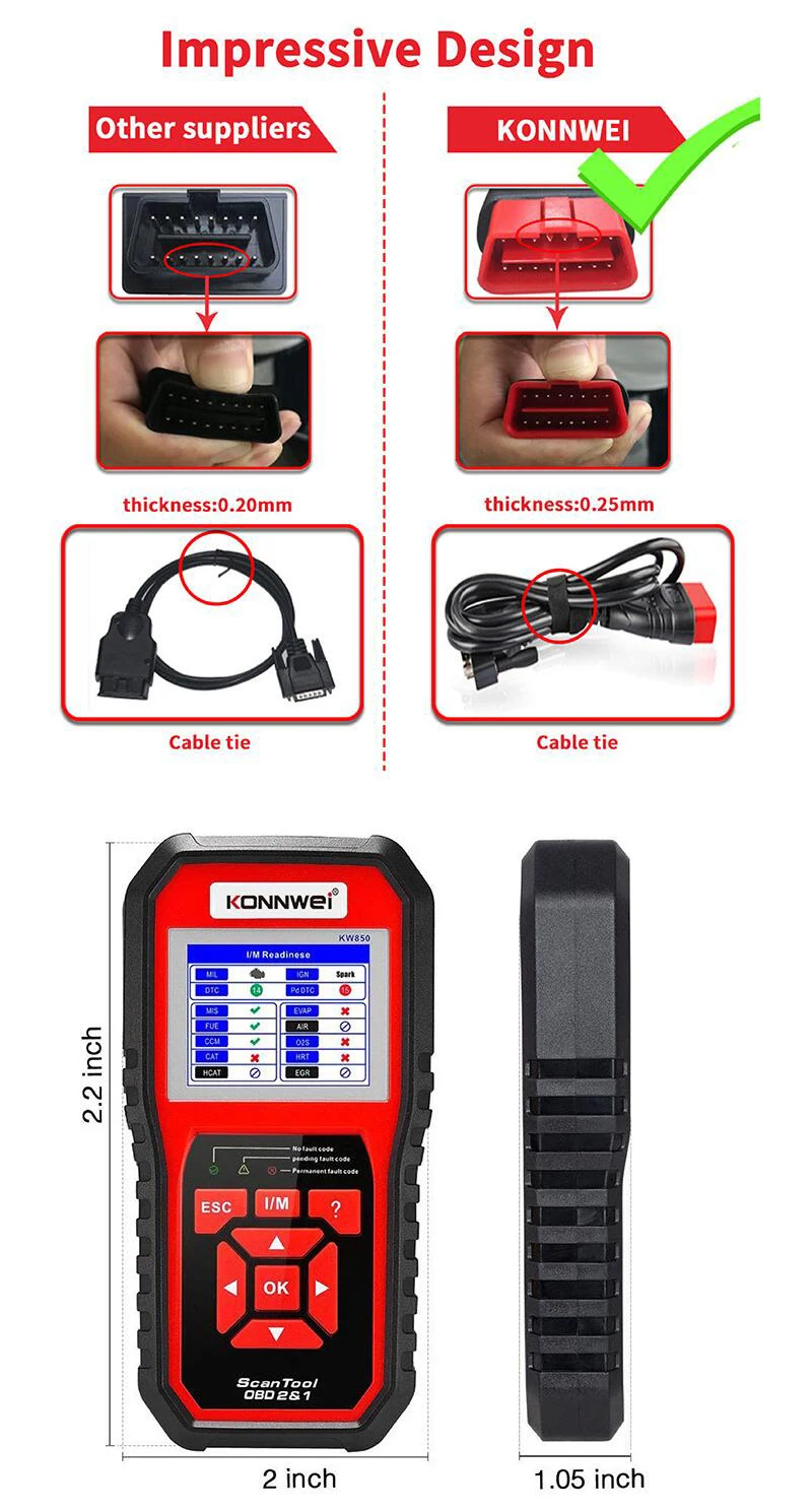 Примечание:Этот продукт может обнаруживать только 12 в бензиновых автомобилей/дизельных автомобилей/гибридных транспортных средств, которые отвечают стандартам OBD2 и EOBD, которые являются одним из пяти основных протоколов: can, J1850 PWM, J1850 VPW, ISO9141 и KWP2000. Все 24V тележки, грузовики и электрические транспортные средства не могут быть обнаружены. Поддержка восьми языков: английский, французский, немецкий, голландский, испанский, русский, португальский, итальянский; Без китайского. Может обнаруживать напряжение автомобильного аккумулятора; Может печатать коды неисправностей автомобиля на компьютере; Можно обновить онлайн бесплатно: http://www.konnwei.com